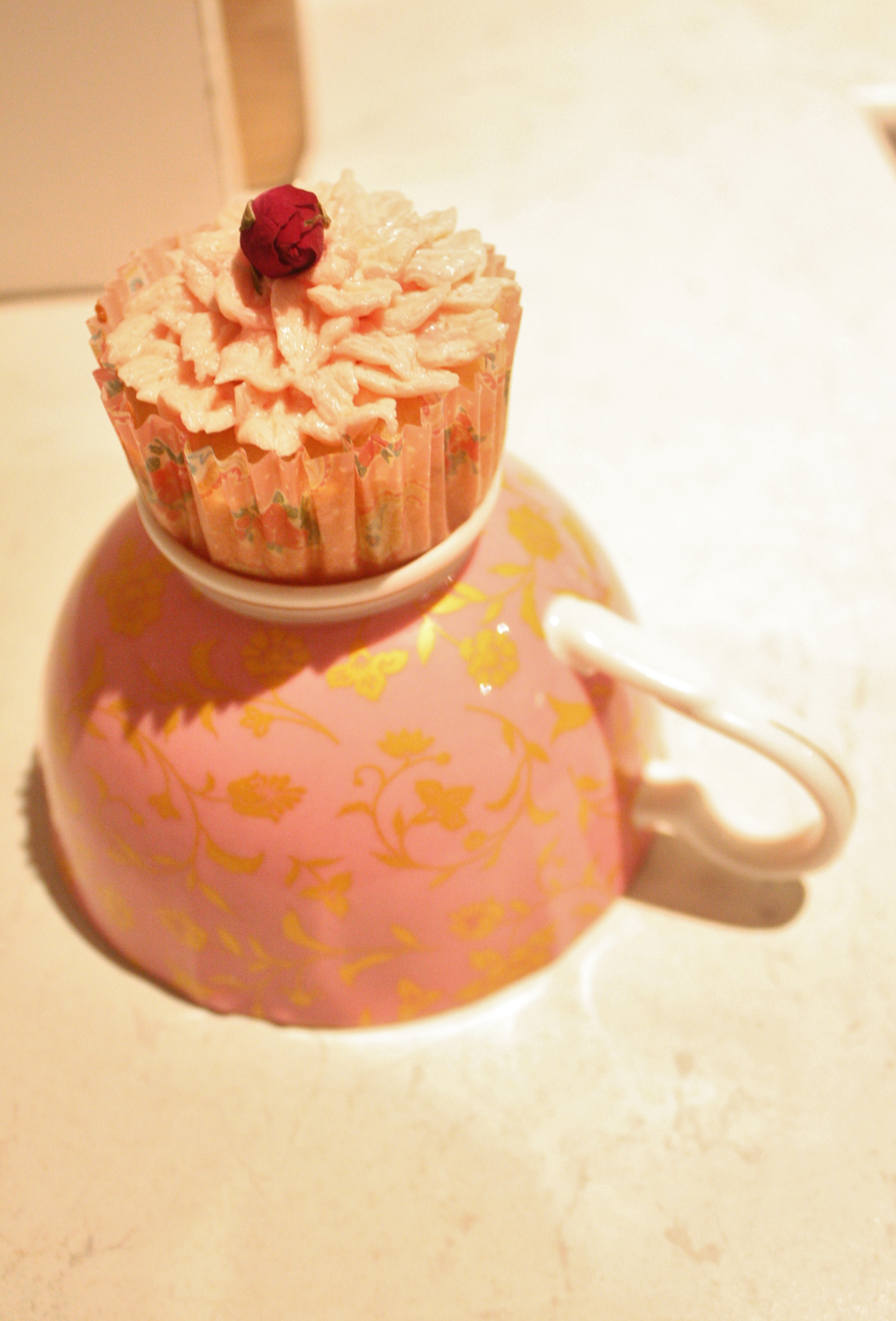 The rose in the icing is gentle and layered, it doesn’t hit you like you’re eating a bouquet of flowers! The rose is complemented perfectly by the soft vanilla of the cupcakes. These darlings look beautiful topped with an extra rose bud and the taste will win over even the manliest men!