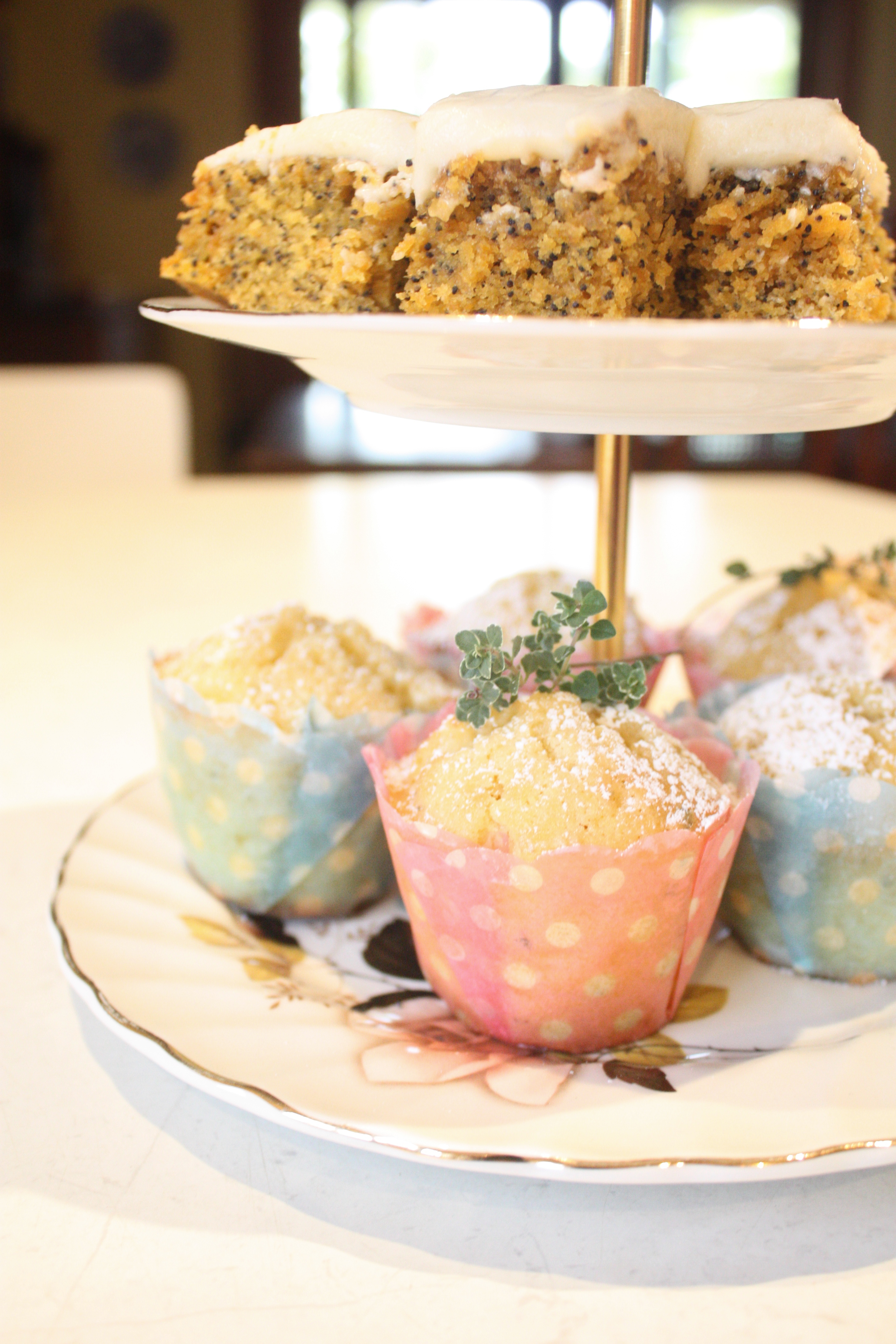 Last post I mentioned re-discovering a fabulous carrot and poppyseed cake. I realised that I don’t proclaim my discovery of things often enough. It would be remiss of me to write any further this week without mentioning my two new loves – lemon thyme and cake stands.