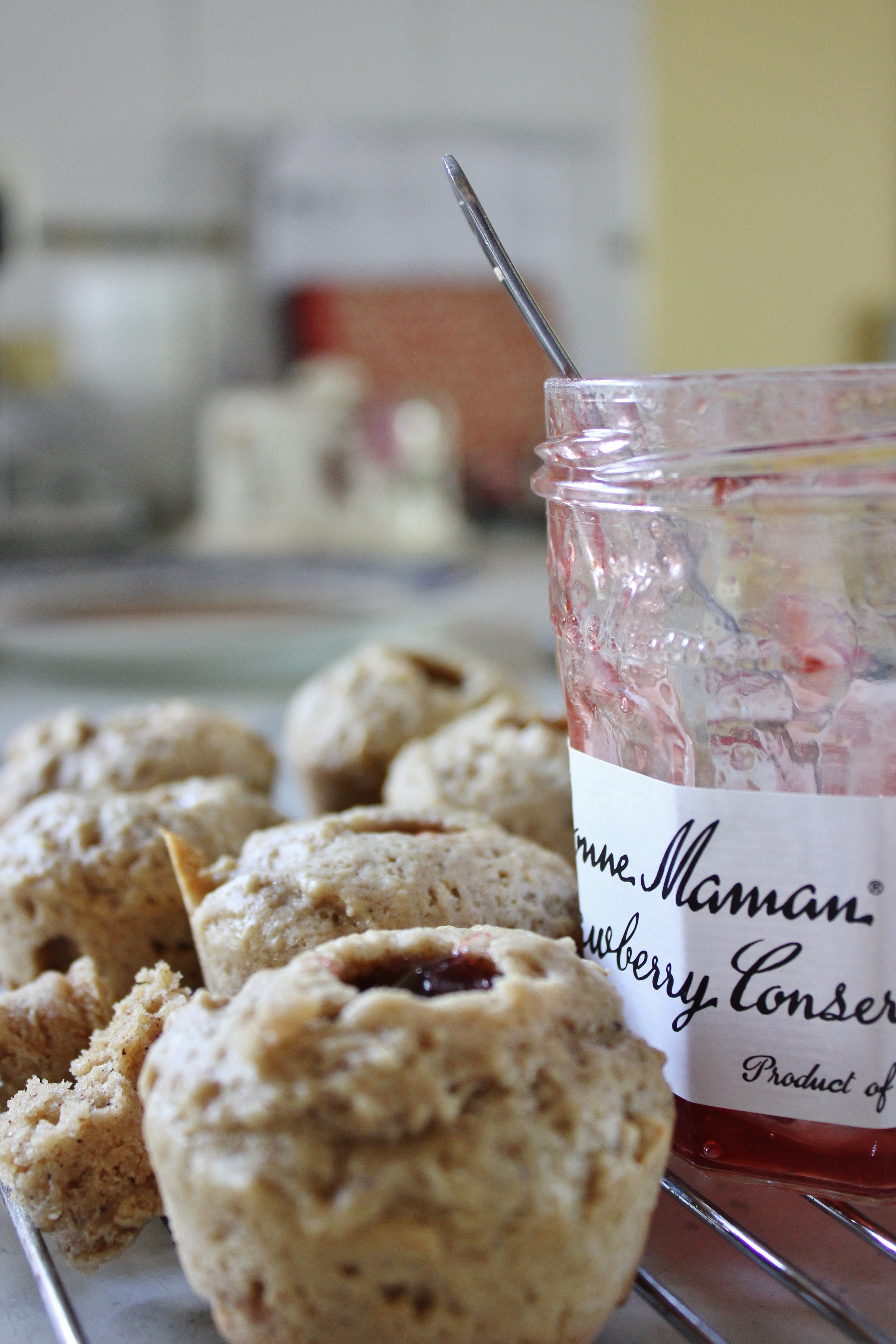 photoI got strawberry jam, so I set about recreating jam doughnuts, like the ones from bakeries of my childhood. The mingling of jam and cinnamon and sugar means that these cupcakes are oozey and warm and crunchy in perfect measures. I’m going to keep working on recipes with jam in them before the members of my household devour the remaining jam!