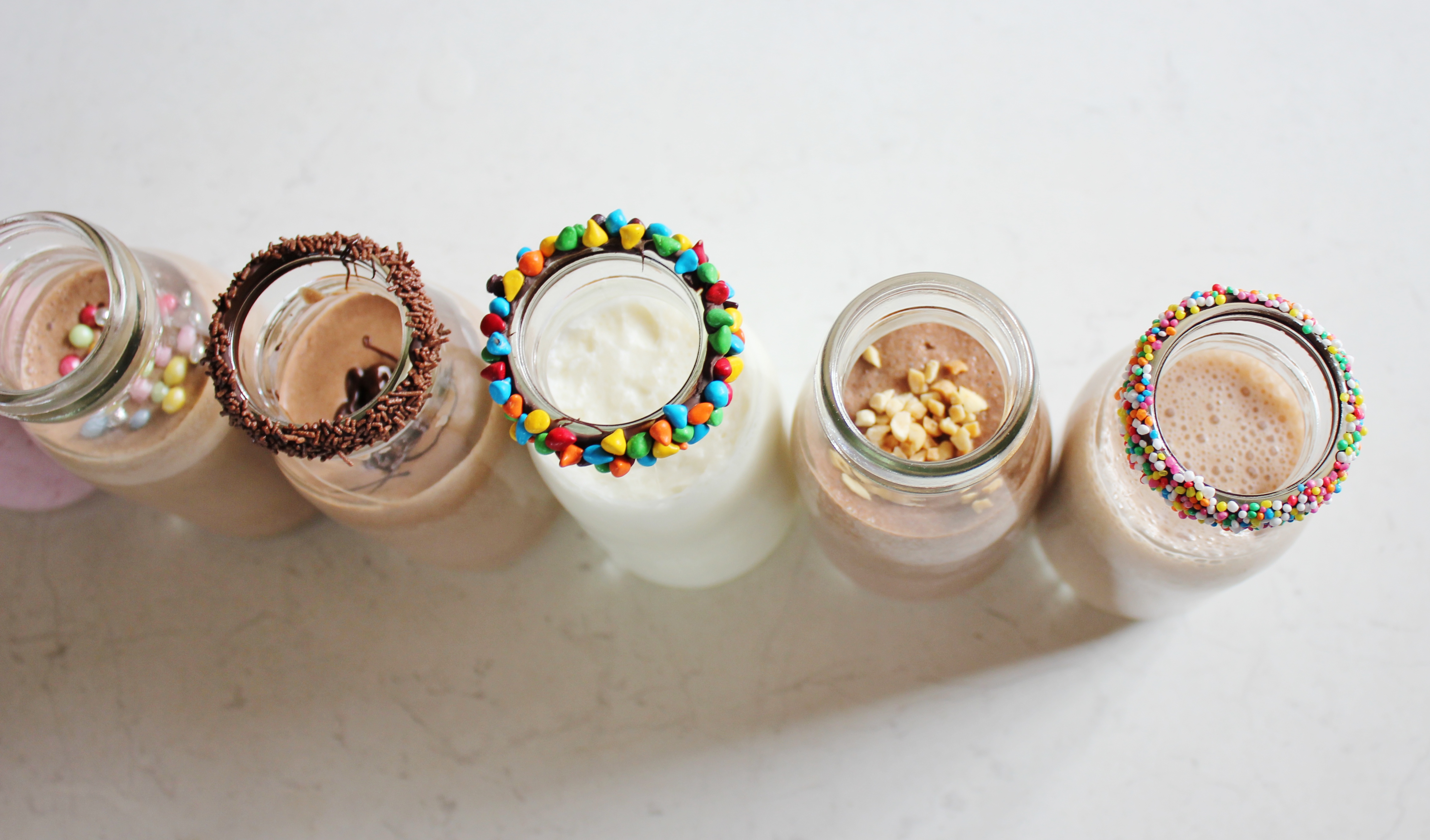 1. Hi Archita, thanks for commenting. I explained how to do it in the second milkshake recipe – all you need to do is dab some extra melted chocolate all the way around the rim of your glass, then roll it in sprinkles or whatever you’re decorating with.