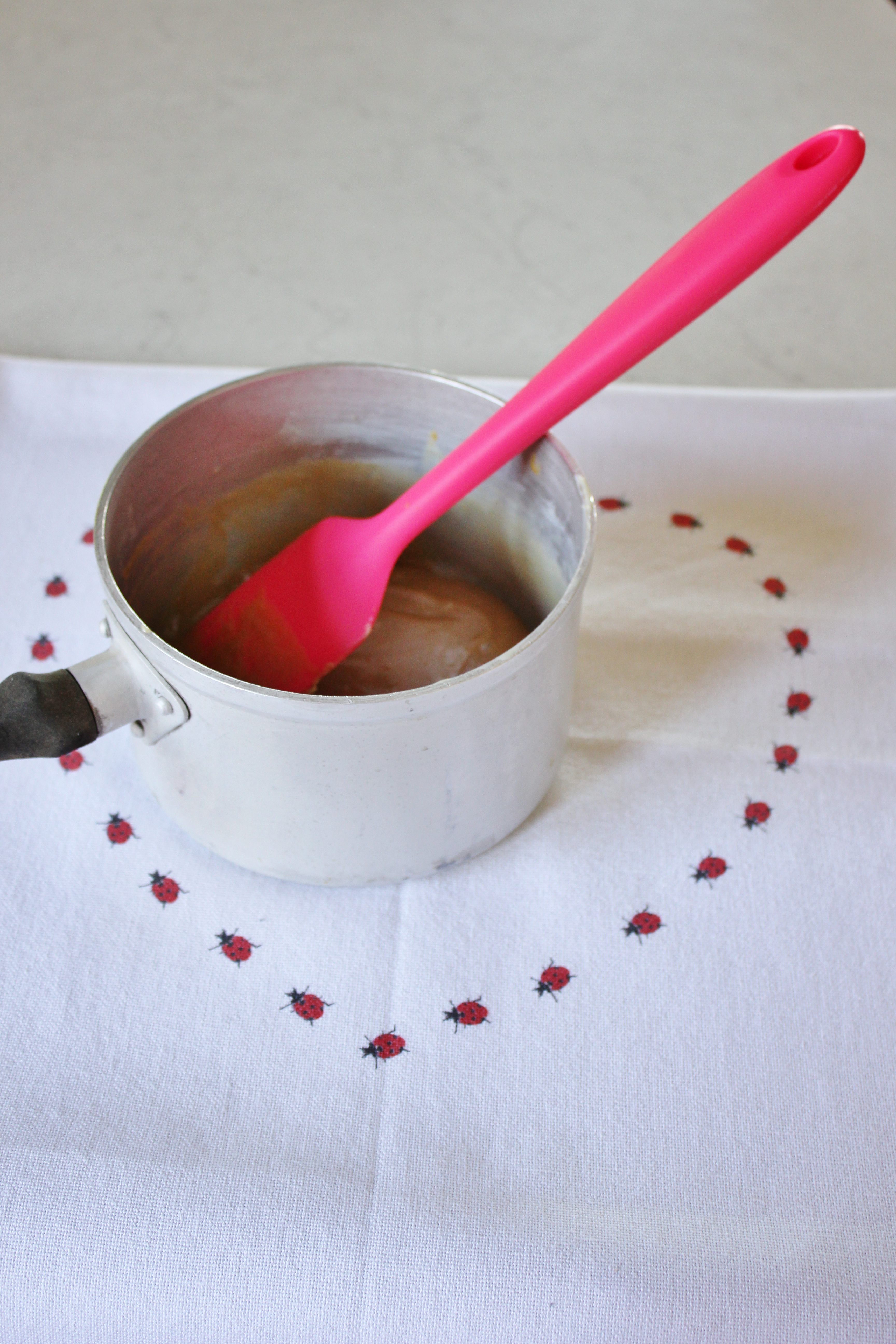 Take the mixture off the heat and set to one side to cool for five minutes. It will thicken as it cools, so make sure you ice the cake while the icing is still warm. Top with some sprinkles (I made my own!!) and serve with a big glass of milk!