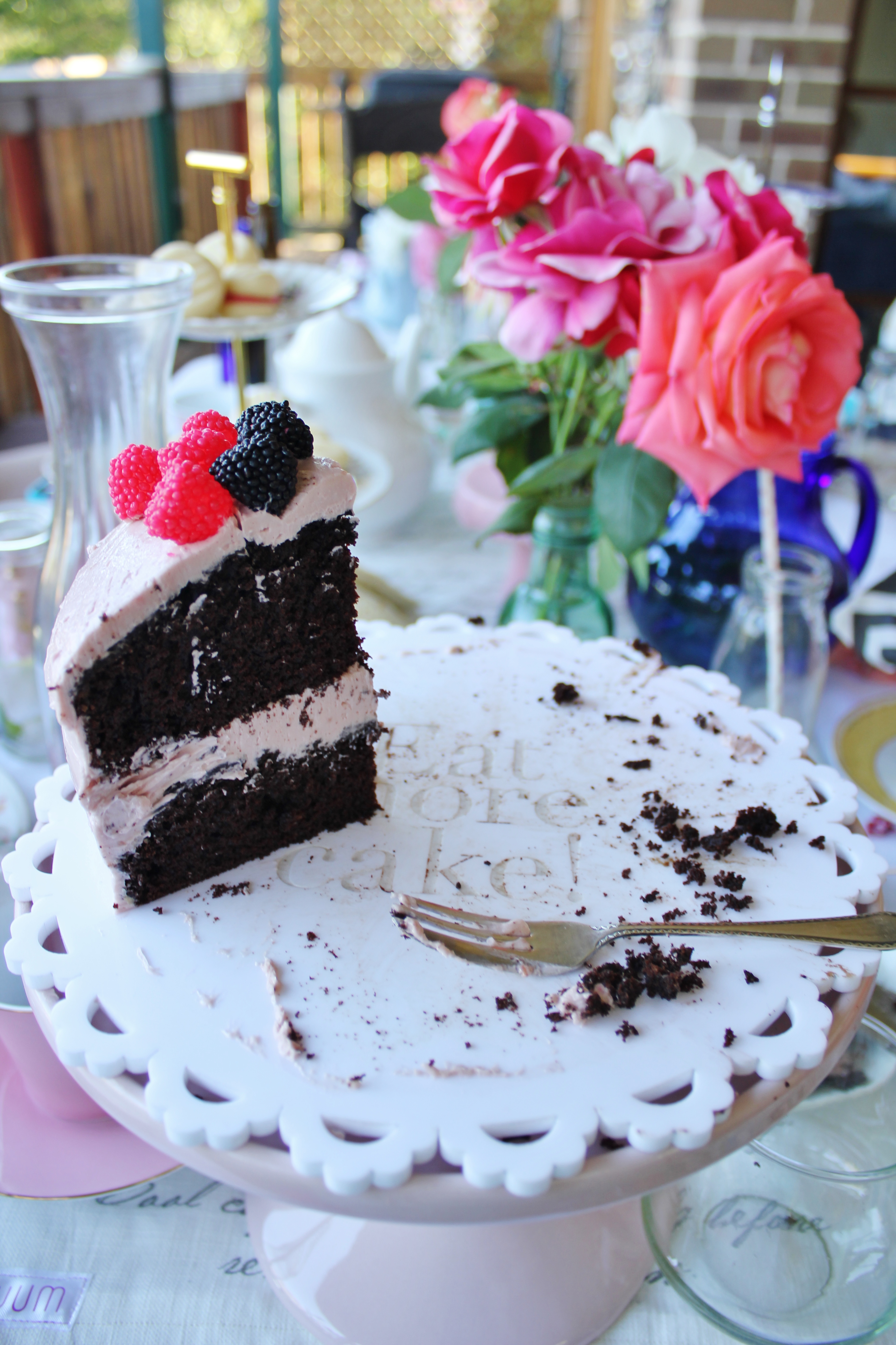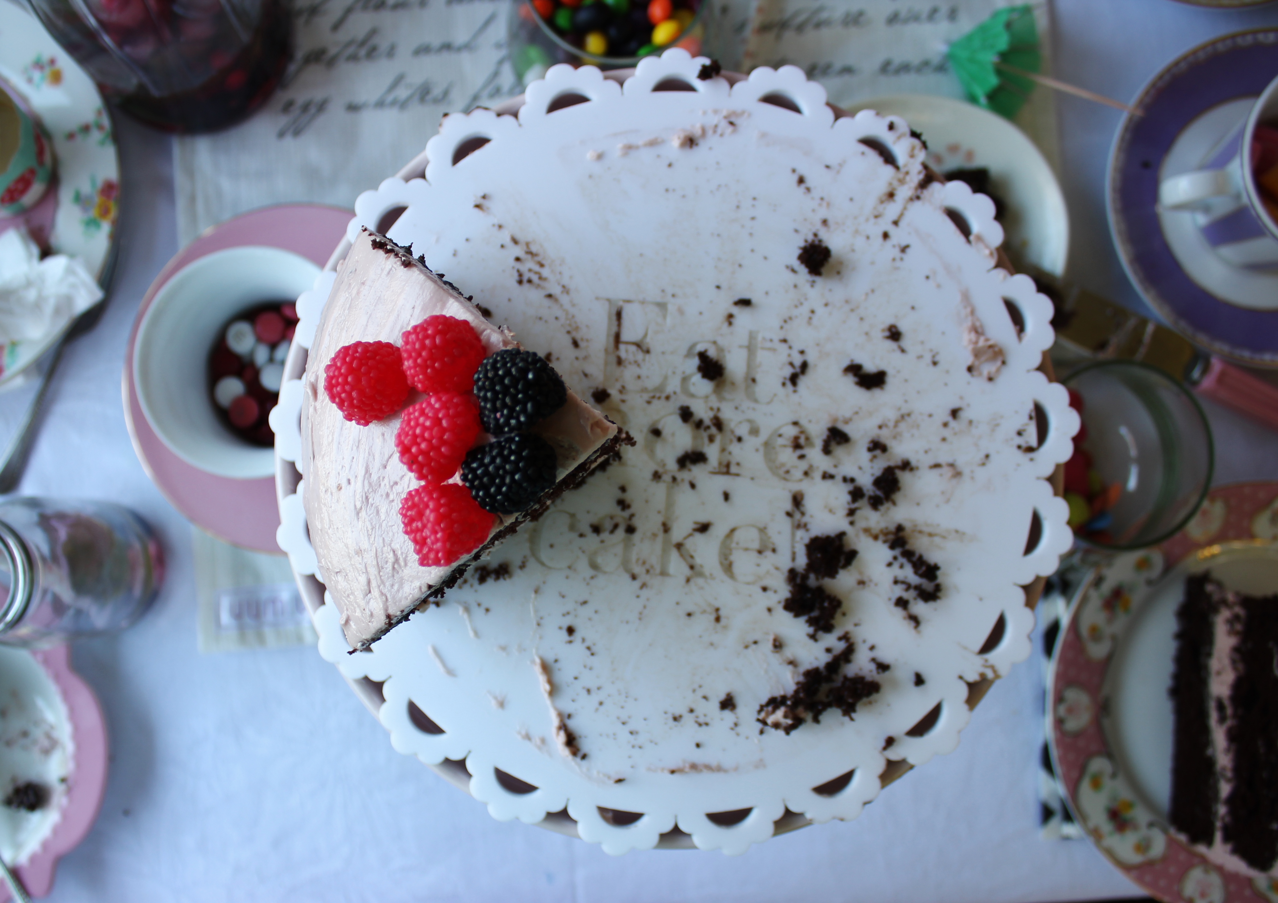 Bianca etched “eat more cake” onto my cake board, which suited the Mad Hatter’s/ unbirthday theme perfectly!