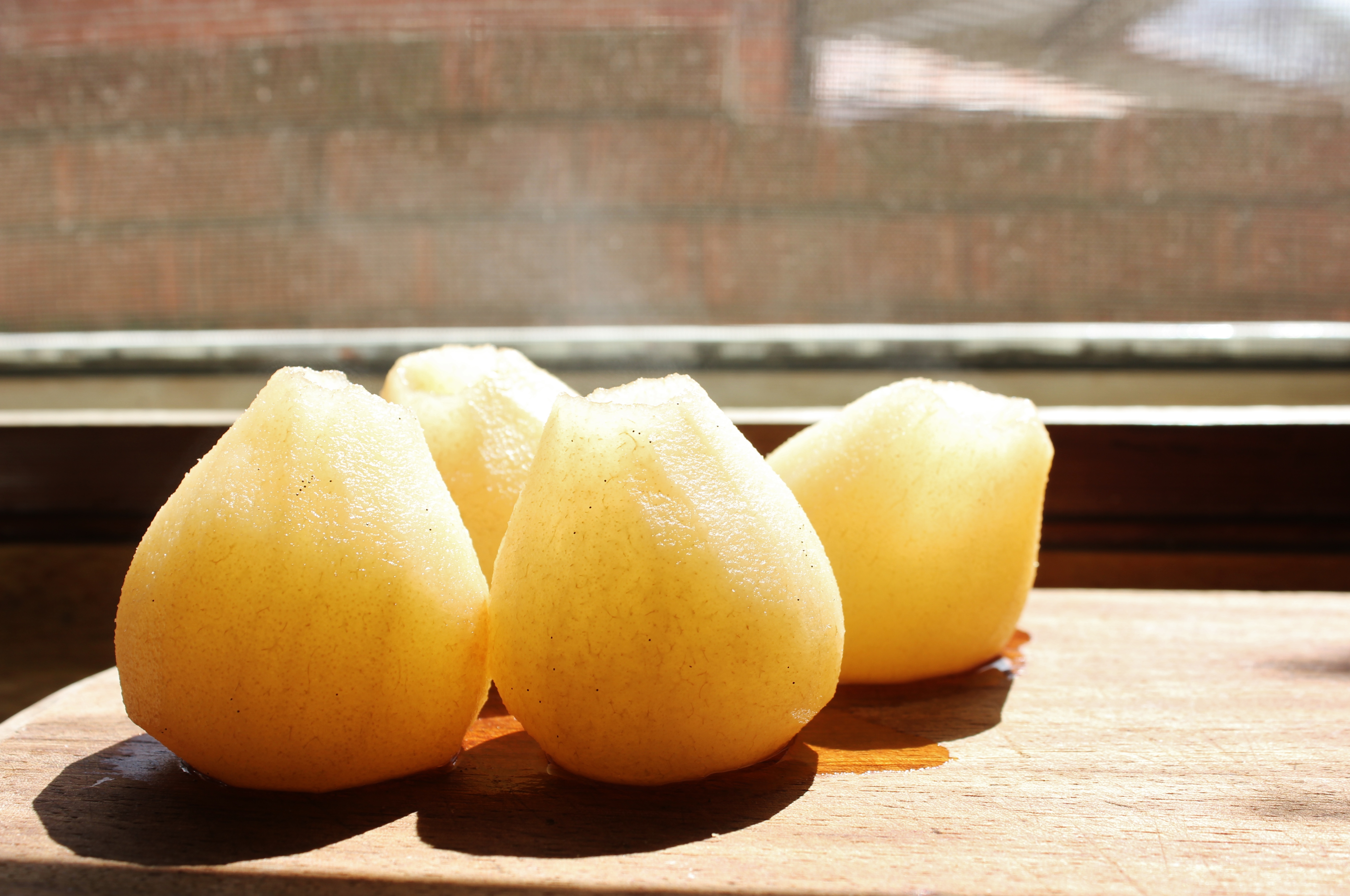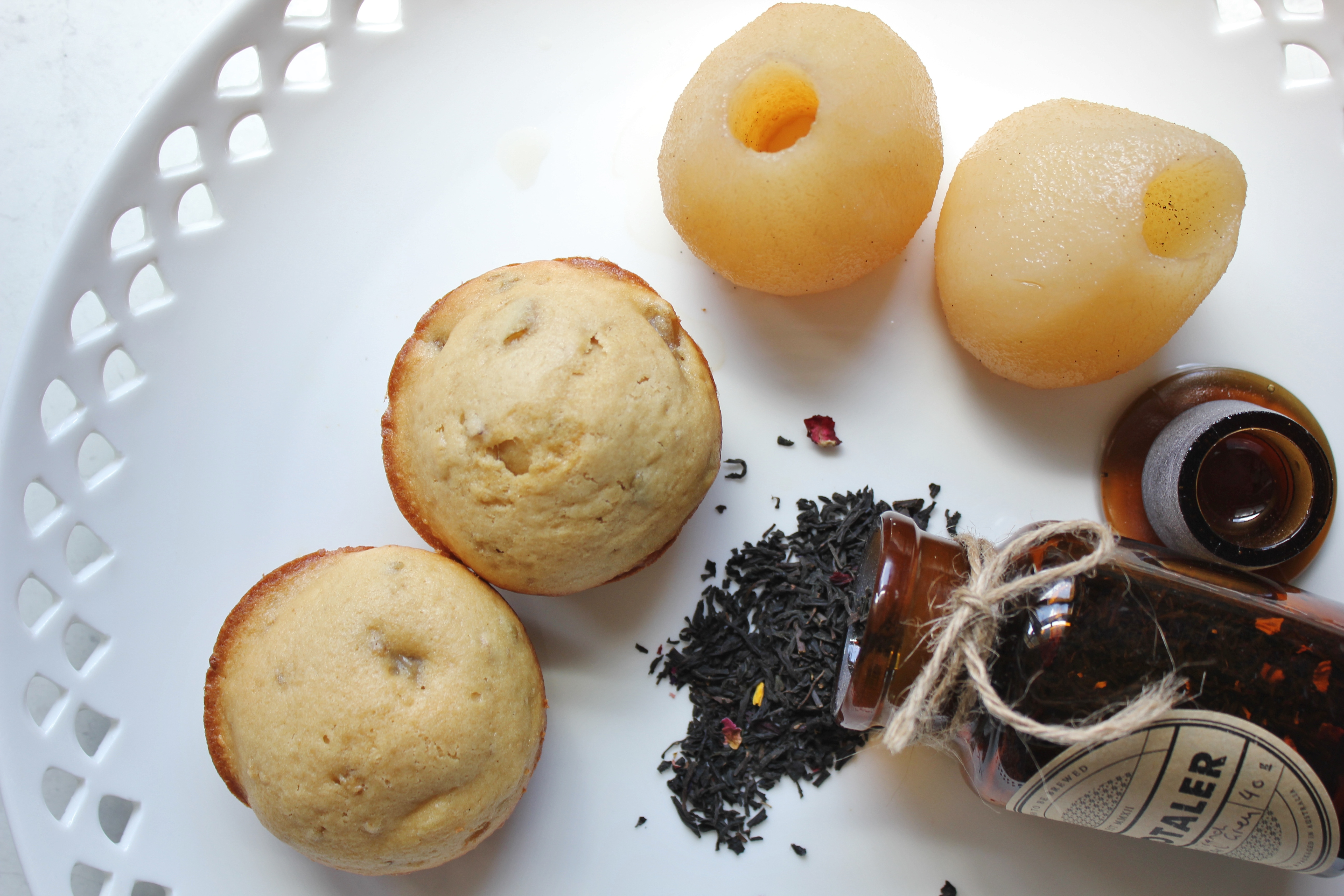 fluffyThese lovely little muffins are gorgeous and packed with floral notes. They’re the perfect afternoon pick-me-up because they’re full of pears and they’ve not got too much butter or sugar in them; the sweetness in the mixture mainly comes from the vanilla bean and the earl grey tea. They’re also great because there is no wastage! You make use of the poaching liquid and the pear peel, so they’re super thrifty! Thriftiness is in at the moment, thank you Macklemore!