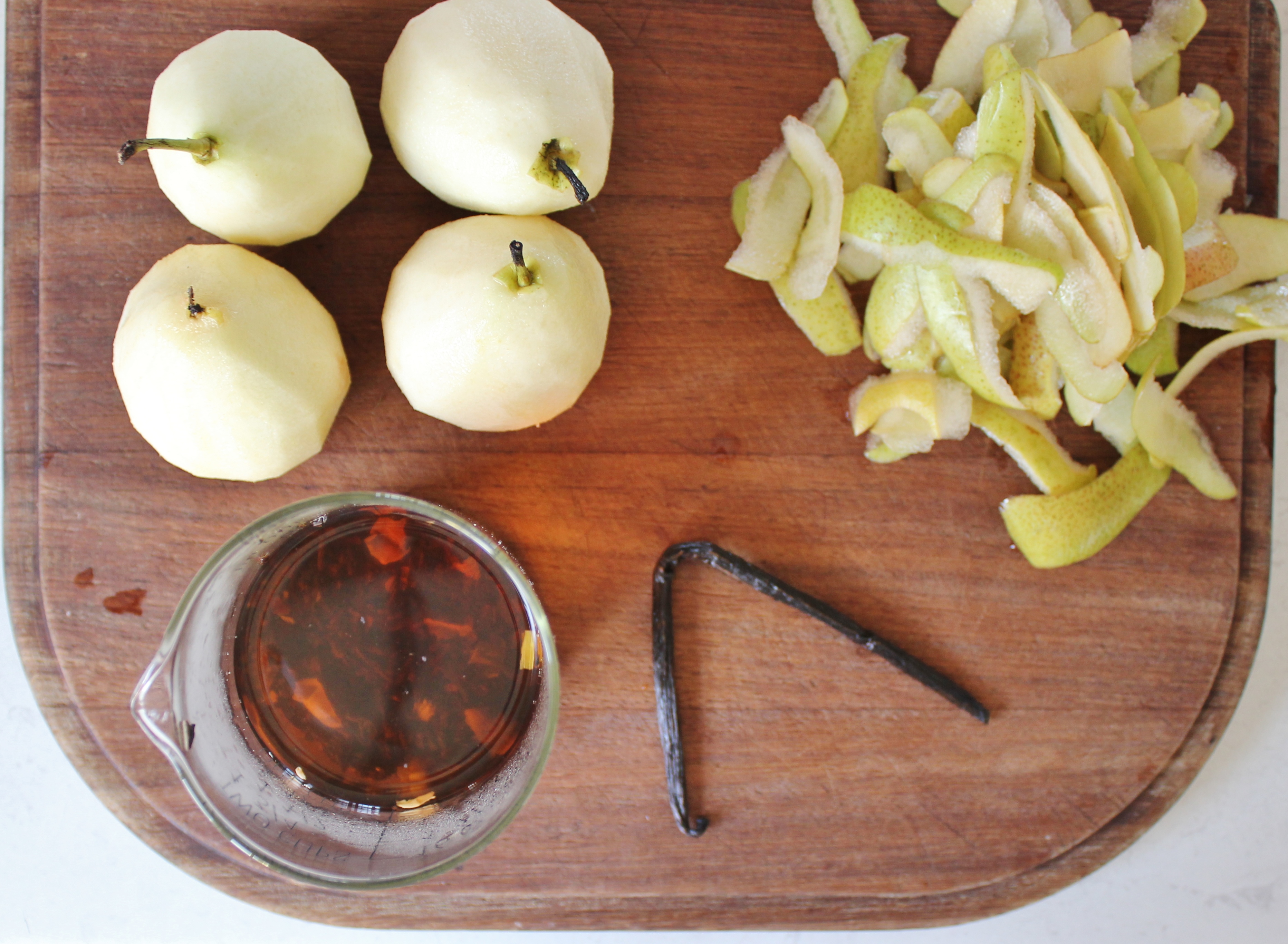 brewedBoil your kettle and measure out one cup to brew the tea in. Allow it to steep for five minutes while you peel and core your pears. Don’t throw your pear skins out! You’ll need it later.