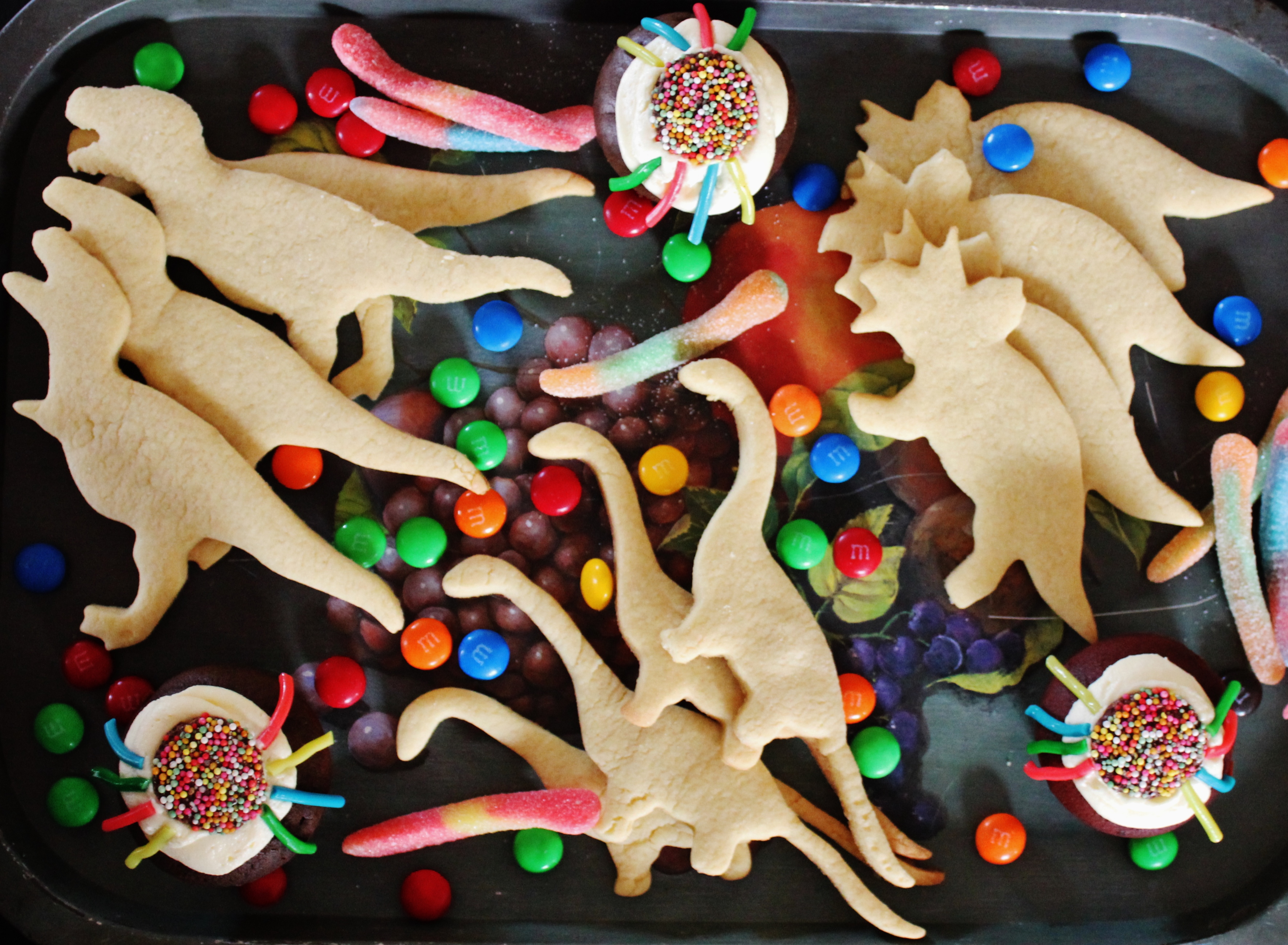 The Boy loves dinosaurs. I bought these biscuit cutters for him some time last year because I thought they were hilarious. Unfortunately, it’s not often that there’s an occasion where it’s appropriate to serve people t-rex shaped biscuits. Thankfully, they’re totally Halloween appropriate!!
