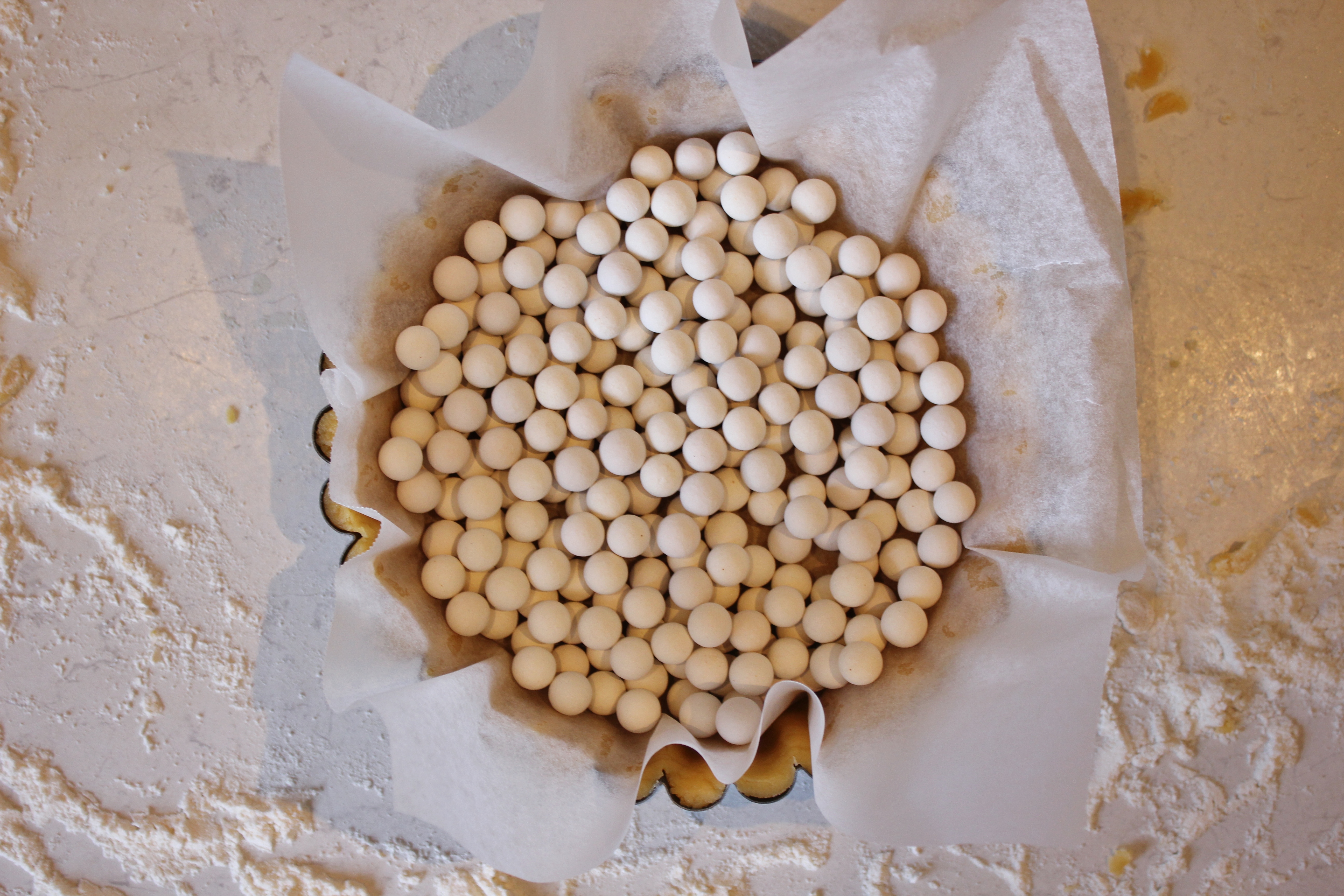 weightsYour pastry should be coming together well, but it will still be crumbly. Add the water, one tablespoon at a time and mix until the pastry clings together well. Press the mixture into a ball, wrap in cling wrap and pop in the fridge for 15 minutes.