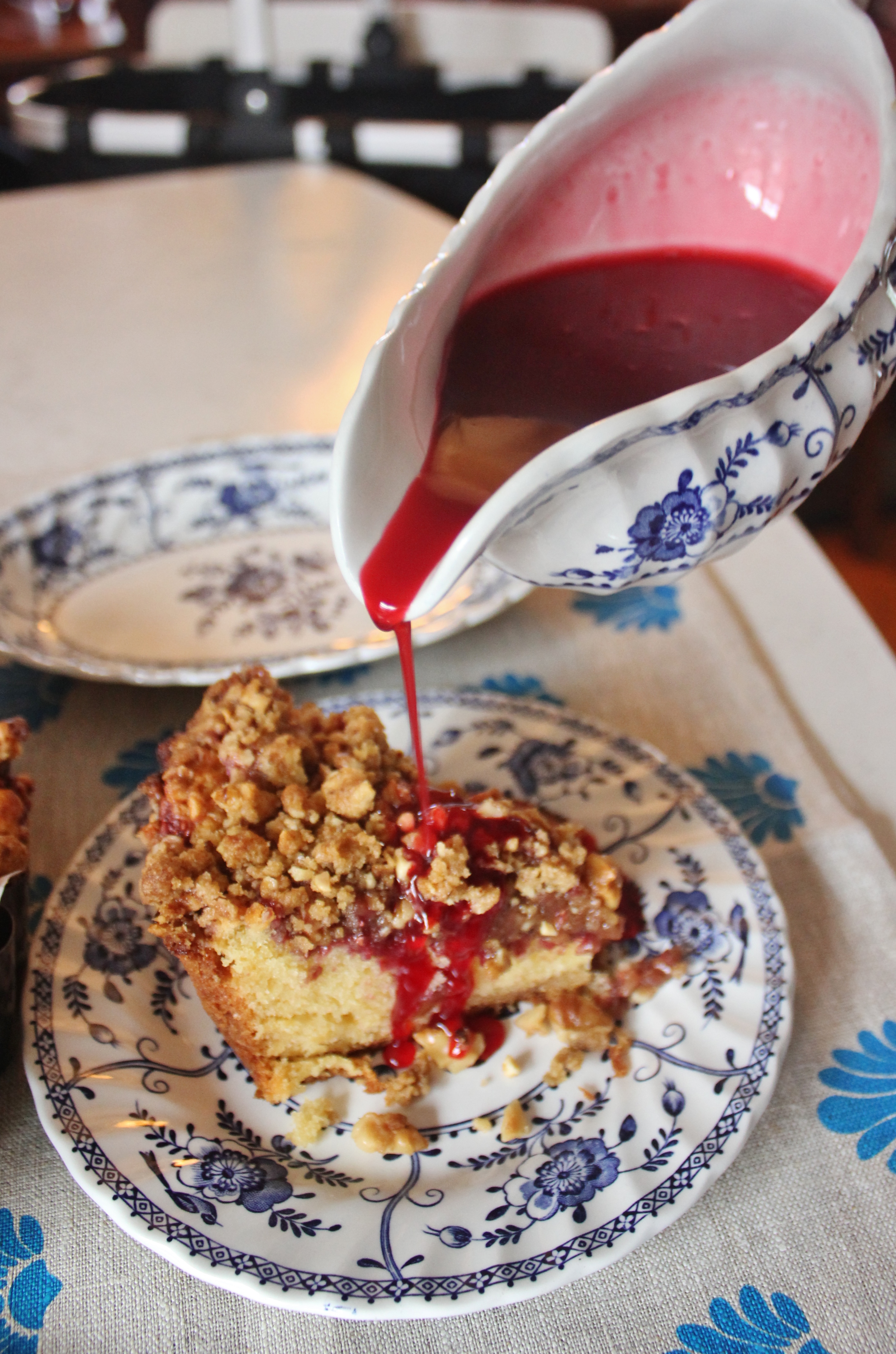 Haha I know all about rain! We’re used to it here! Gorgeous tea towel and I love your pie slice 🙂 This looks so pretty – love the combination of raspberry and walnut.