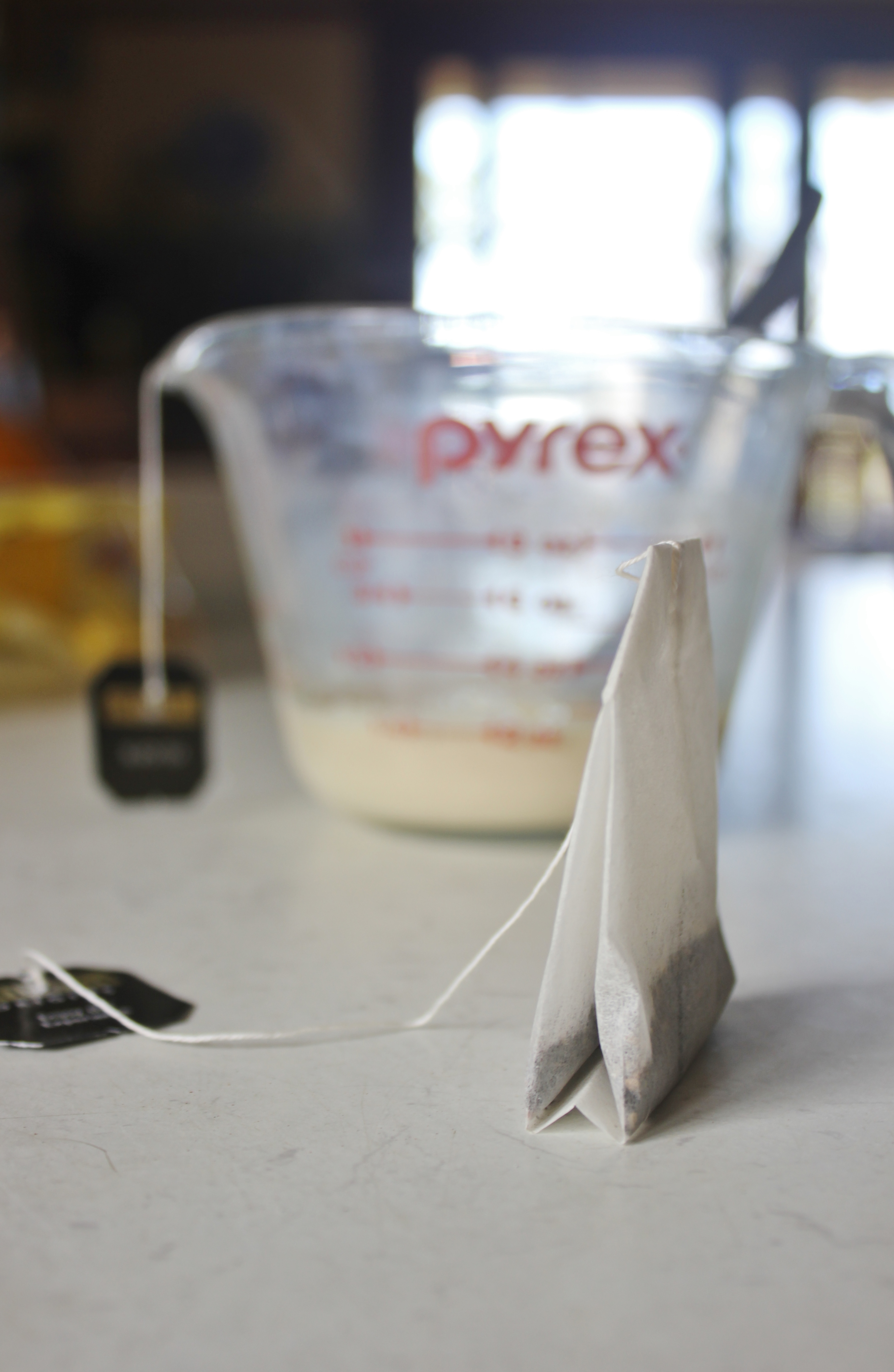 When the milk and tea have brewed, pour the mixture (it should be about four tablespoons,) into the icing sugar and butter. Add the rest of the icing sugar to the mixture and beat until smooth.