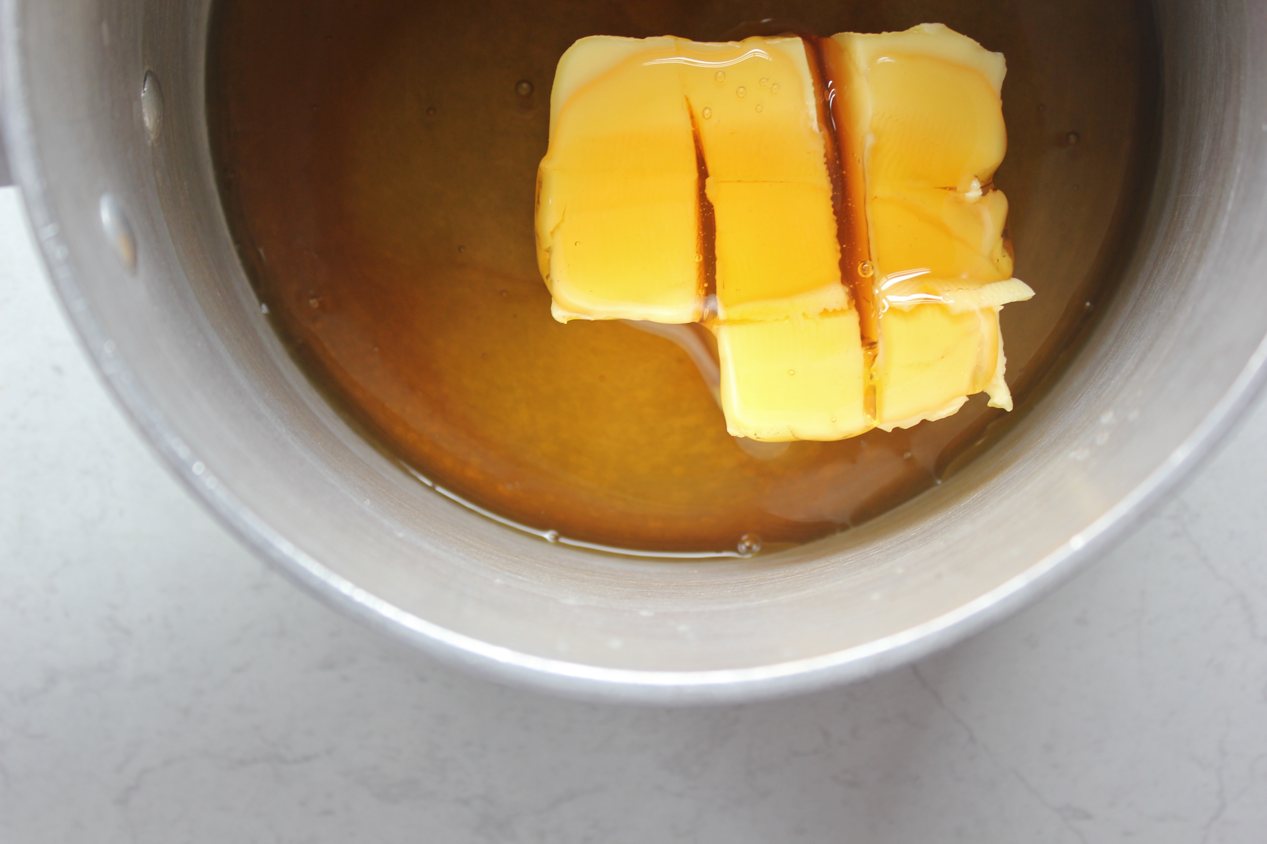 meltMelt the butter, honey and golden syrup in a small pan over a medium flame, stirring regularly so it doesn’t burn. I used some beautiful ironbark honey that I won from A Slice of Orange, it packs a super honey flavour without being overly sweet. Whatever honey you have in your cupboard will work perfectly in this recipe. When the butter has completely melted, keep it over the flame for about a minute so that the mixture thins out.