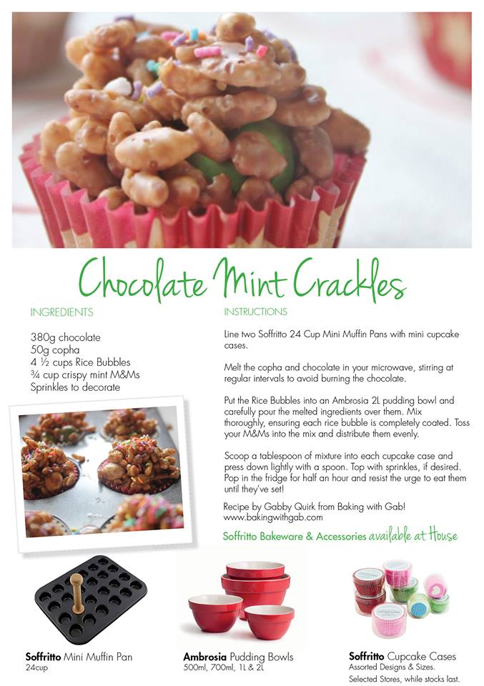 chocolate crackles cardRegular readers will know that I recently held a teapot giveaway. I loved reading all of the fun, crazy, beautiful entries that people came up with. What most people don’t know is that the teapot giveaway started an ongoing relationship between Baking with Gab and the lovely people at house.com.au