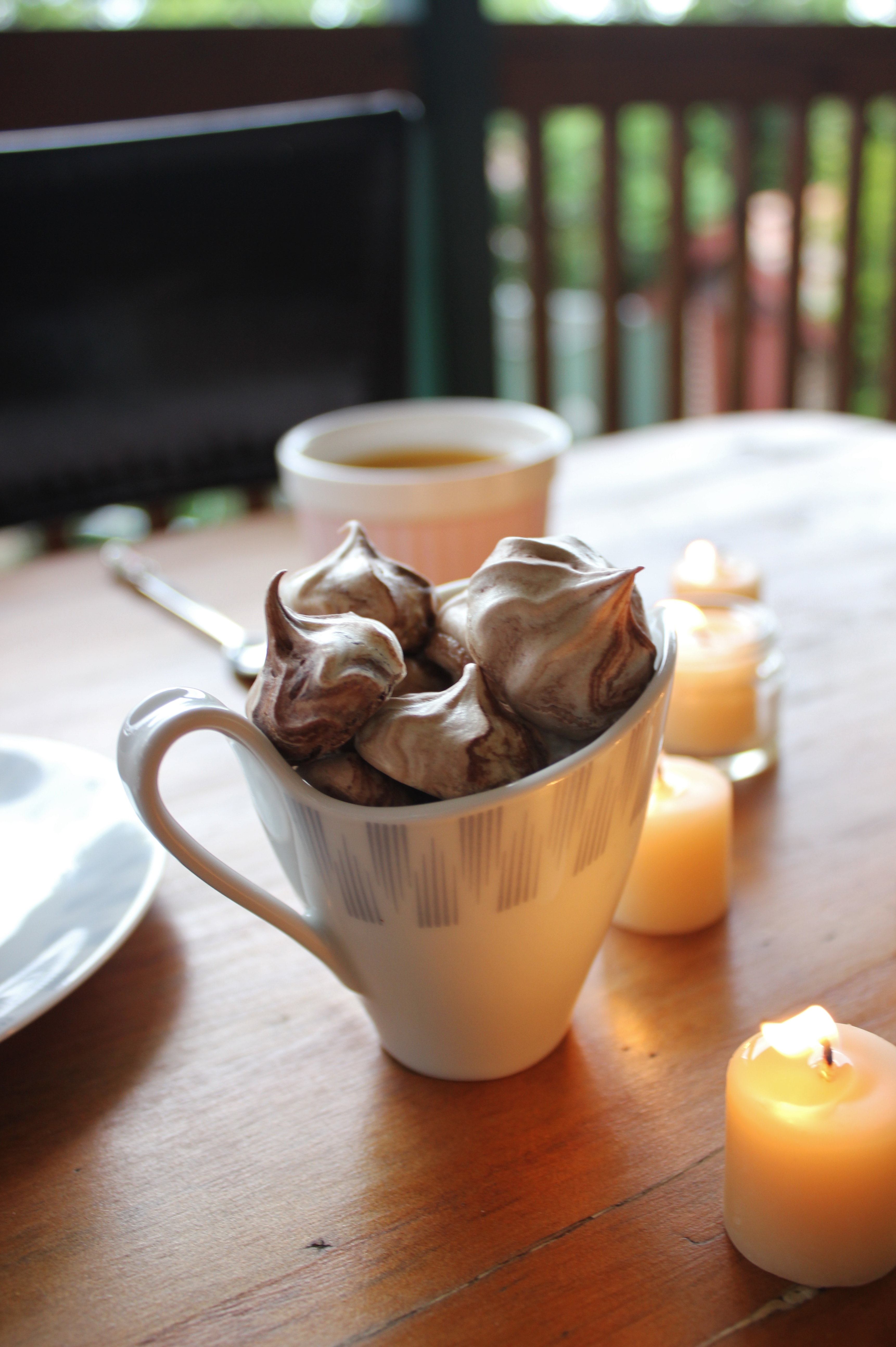 meringuesOn the weekend I posted some sweet little chocolate meringue morsels and promised an even sweeter dessert to accompany them. This is what you’ve been waiting for with baited breath (ha!) – honey pots de crème.