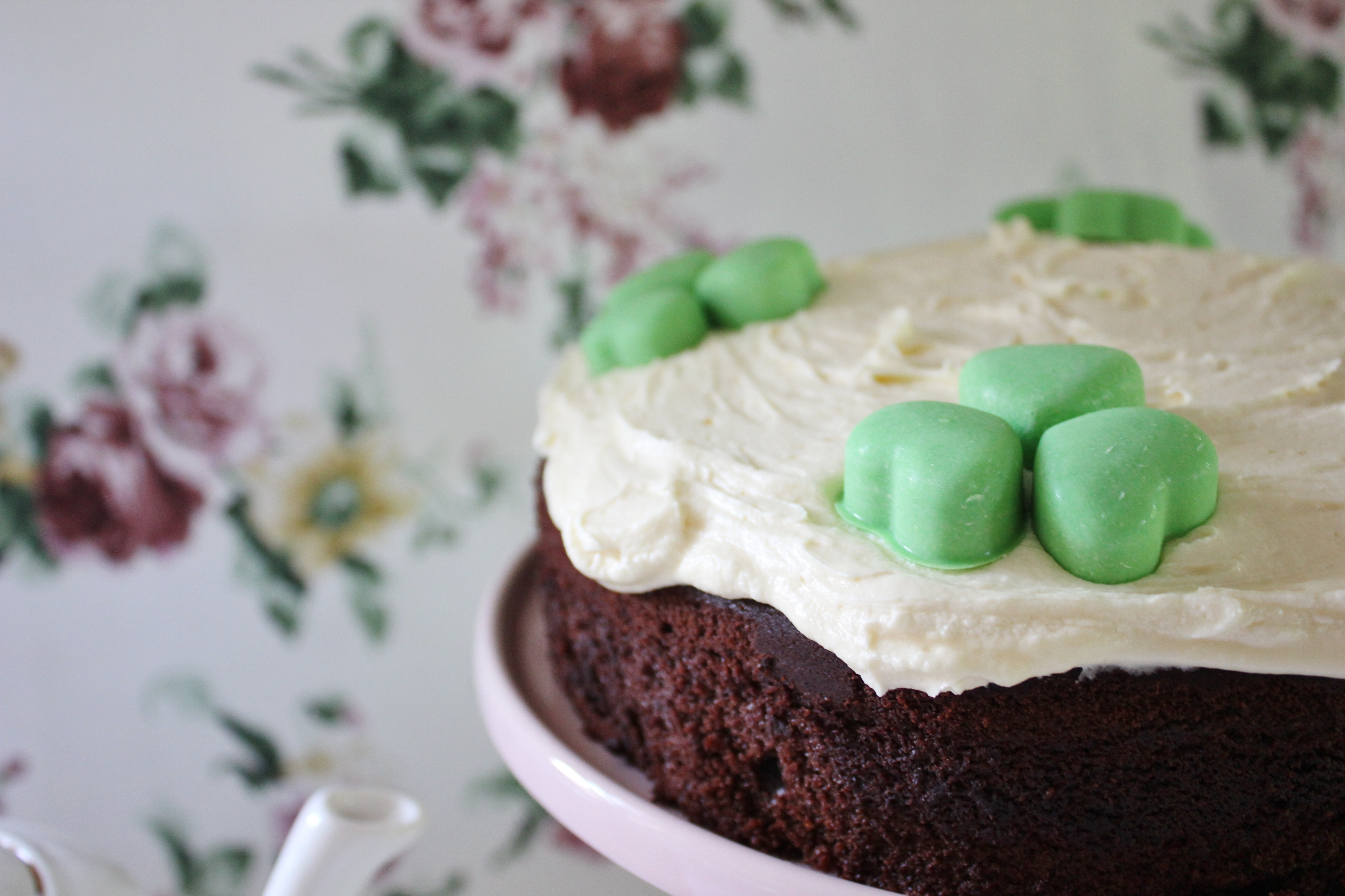 Yesterday I posted a delectable little cake in preparation for St Patrick’s day – it was chocolatey, Guinness-y and whiskey-y. Delightful. What I held off posting, was a little recipe for the chocolate clovers I decorated the cake with.