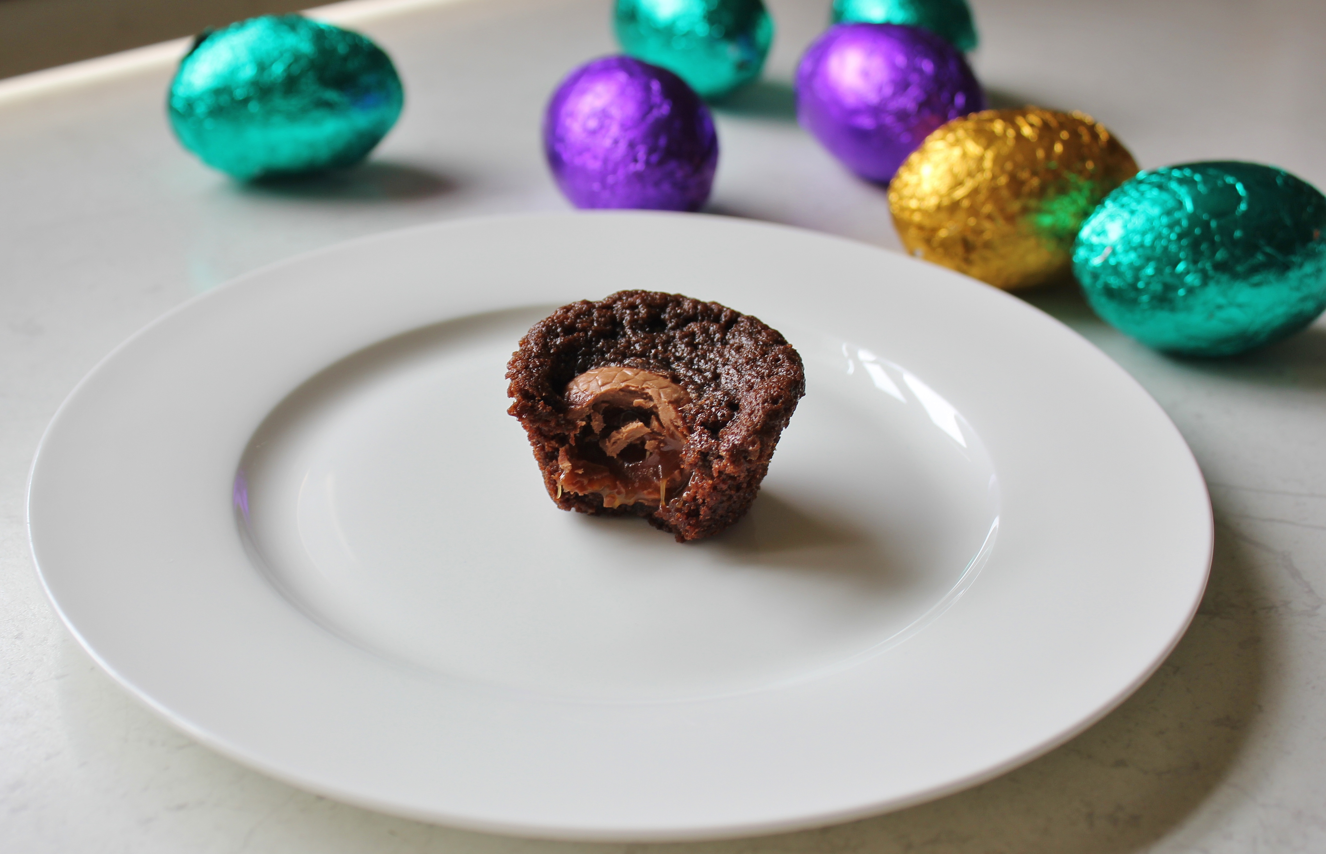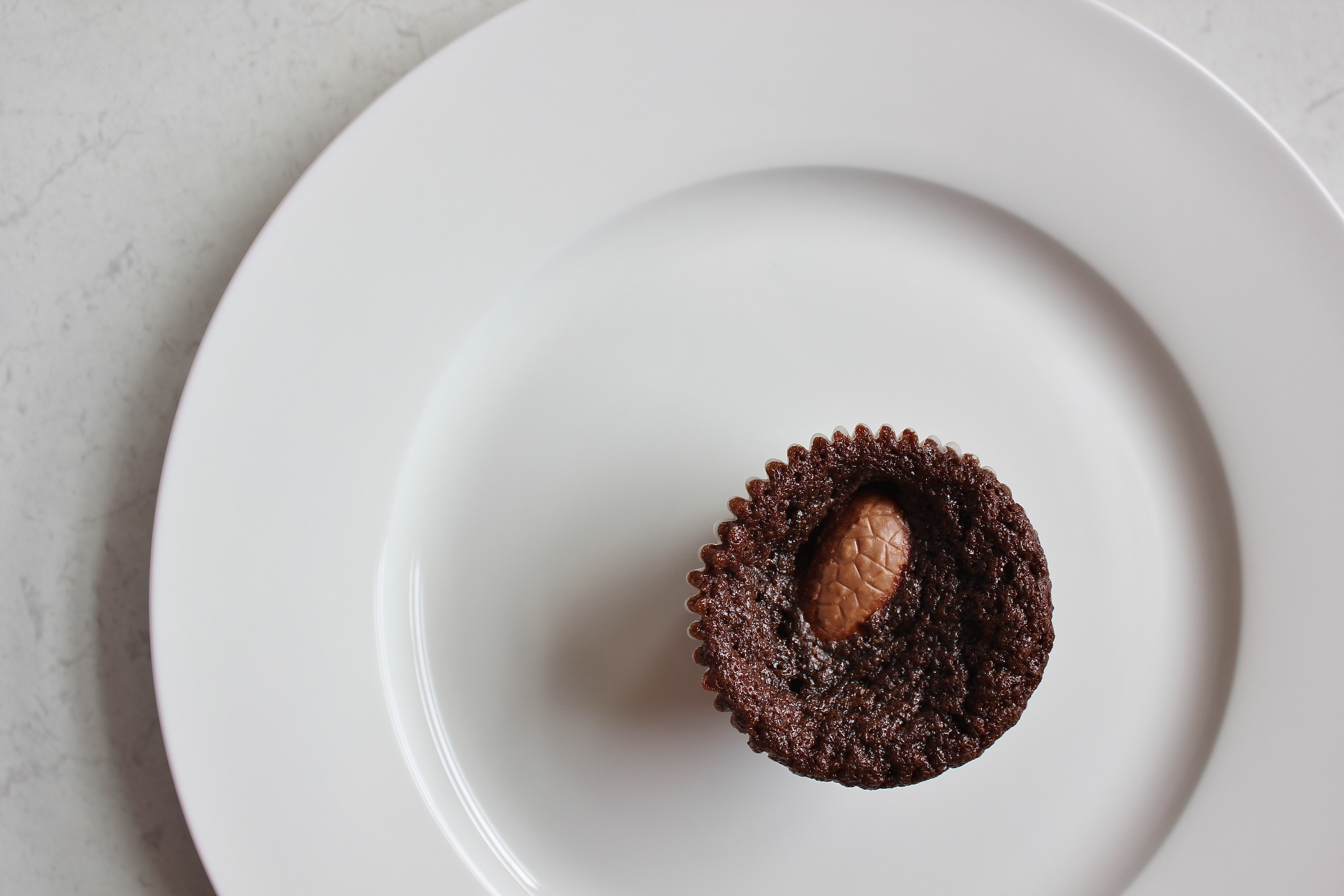 pressSpoon your mixture into the cupcake pans so that they’re filled about half way. Unwrap all of the caramel eggs and push them into the centre of each batter-filled patty pan. I used Cadbury caramel eggs, but you can use whichever brand you like.
