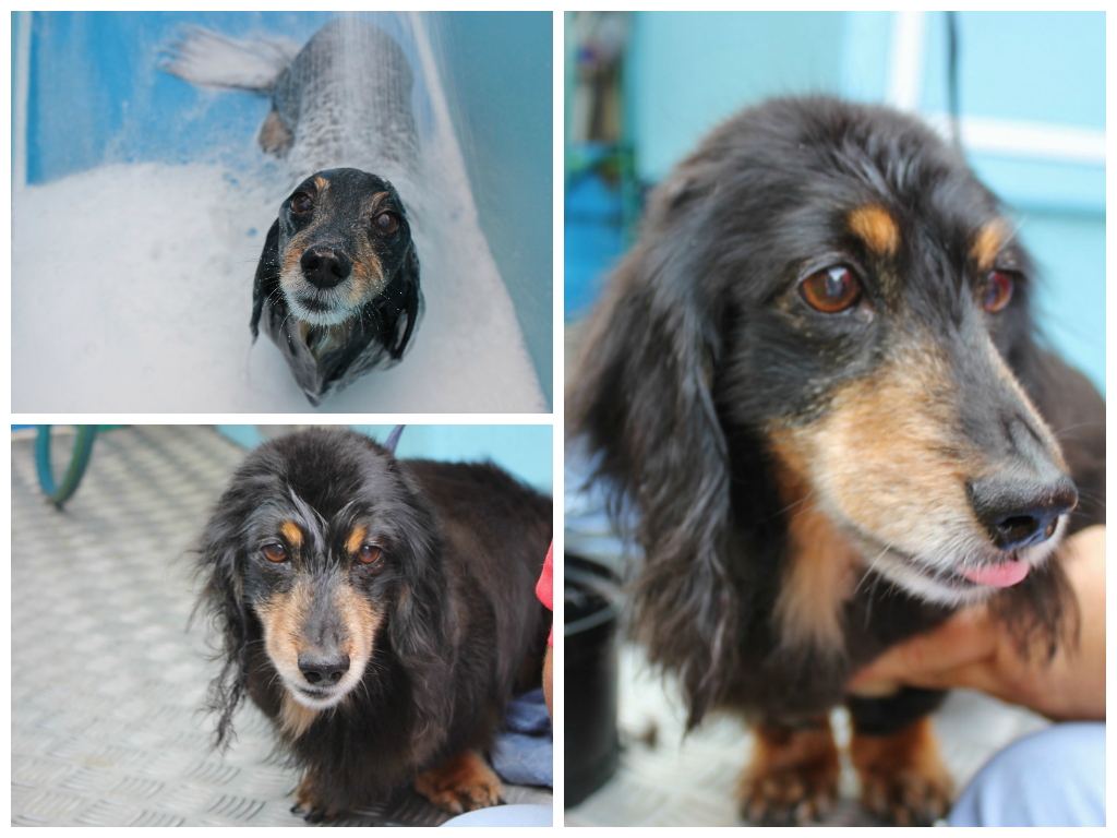 Norman wash montageSpeaking of unprepared, I promised that I’d post further pictures of Norman’s haircut. And all I’ve got are pictures of him mid-wash. For those of you interested in the handsome final product, check him out on my Instagram.