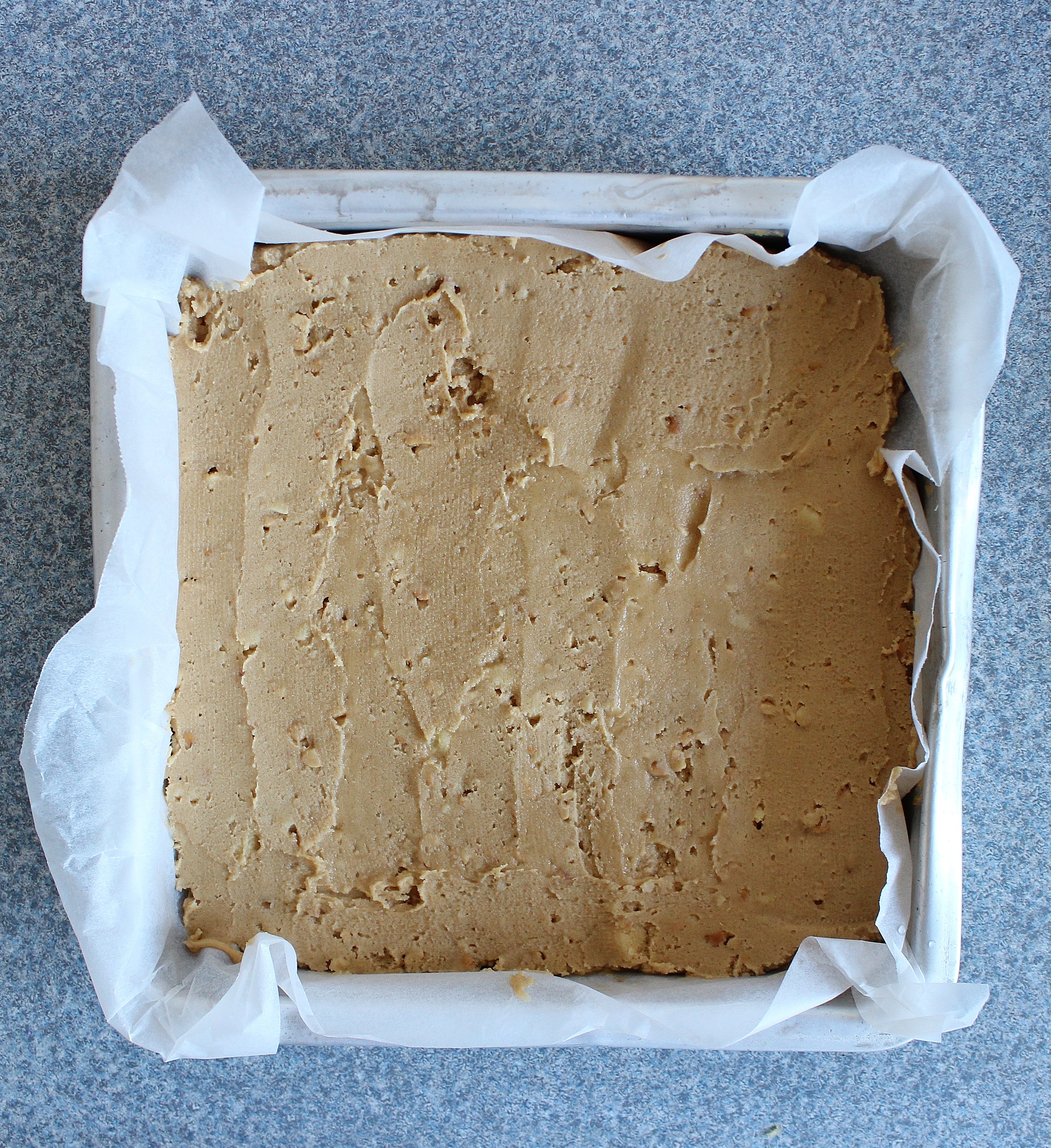 Melt your chocolate and pour over the top of the peanut butter mixture.