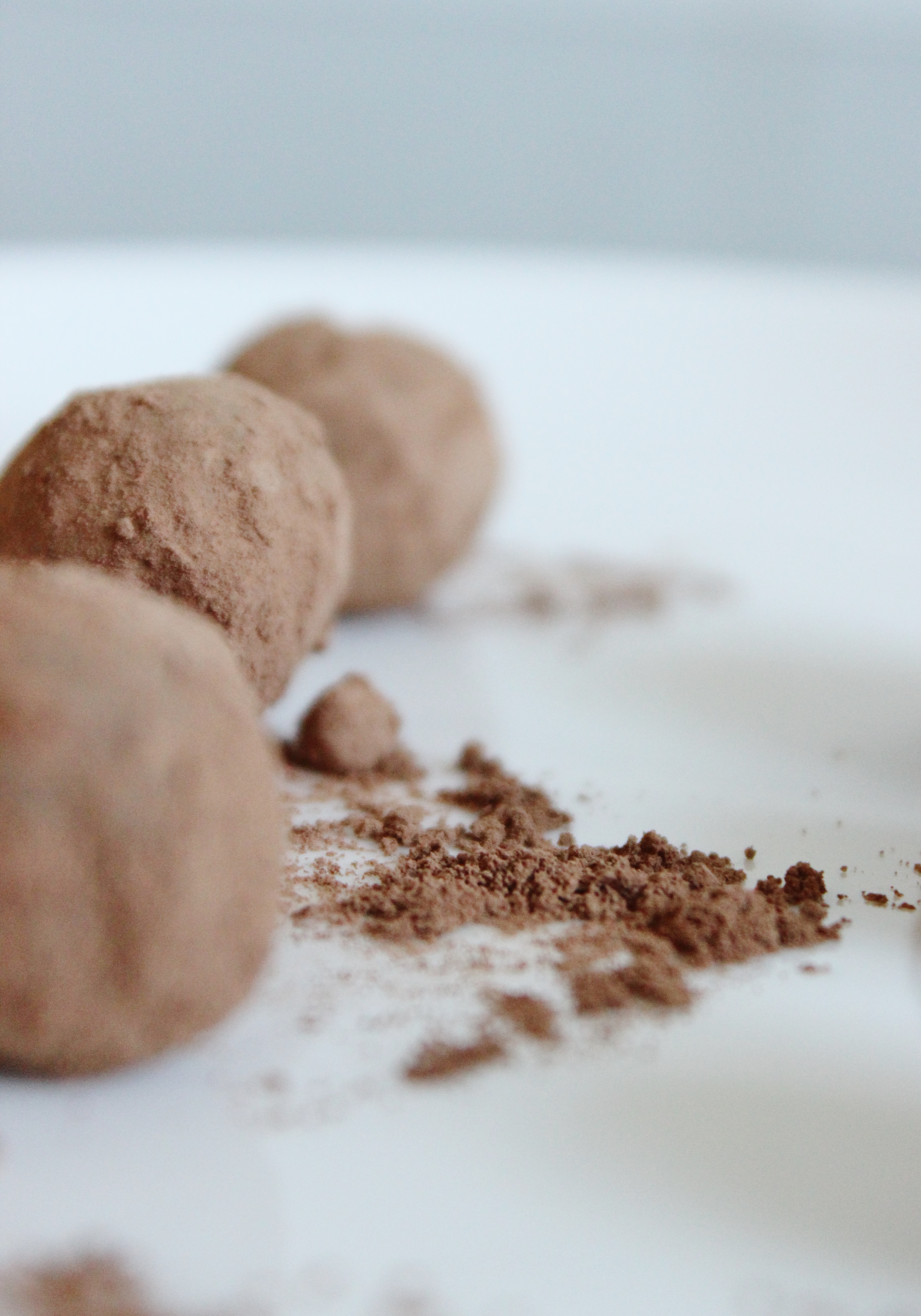 When you’ve rolled all of your balls, plop them in the cocoa in batches and swill the bowl around to coat them. Use a spoon to fish them out and shake some of the excess cocoa off them. Plonk them on a plate and prepare to impress your guests!