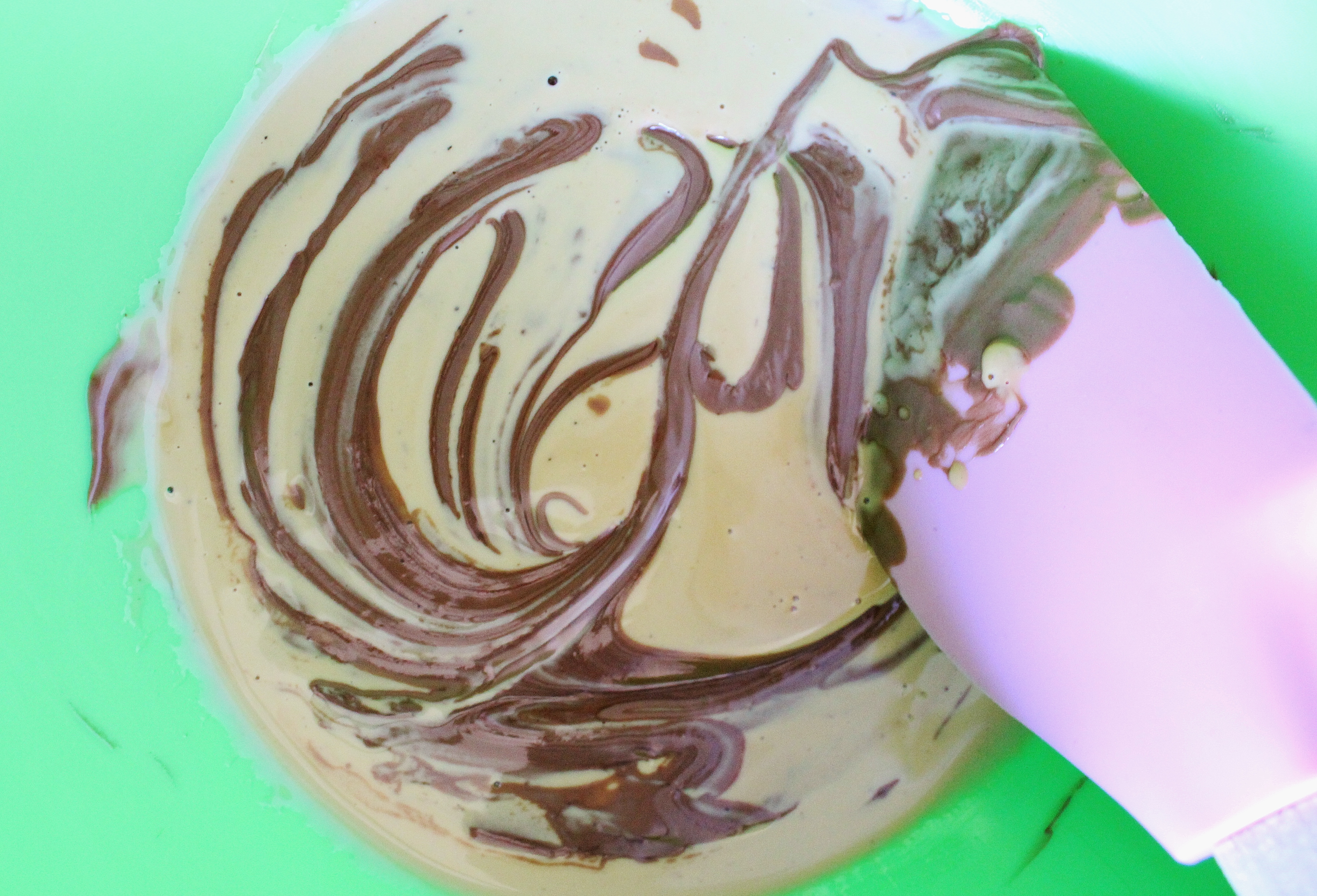 When your chocolate is completely melted, pour it into the warm cream mixture and mix as swiftly as possible, as it will start to harden up slightly.