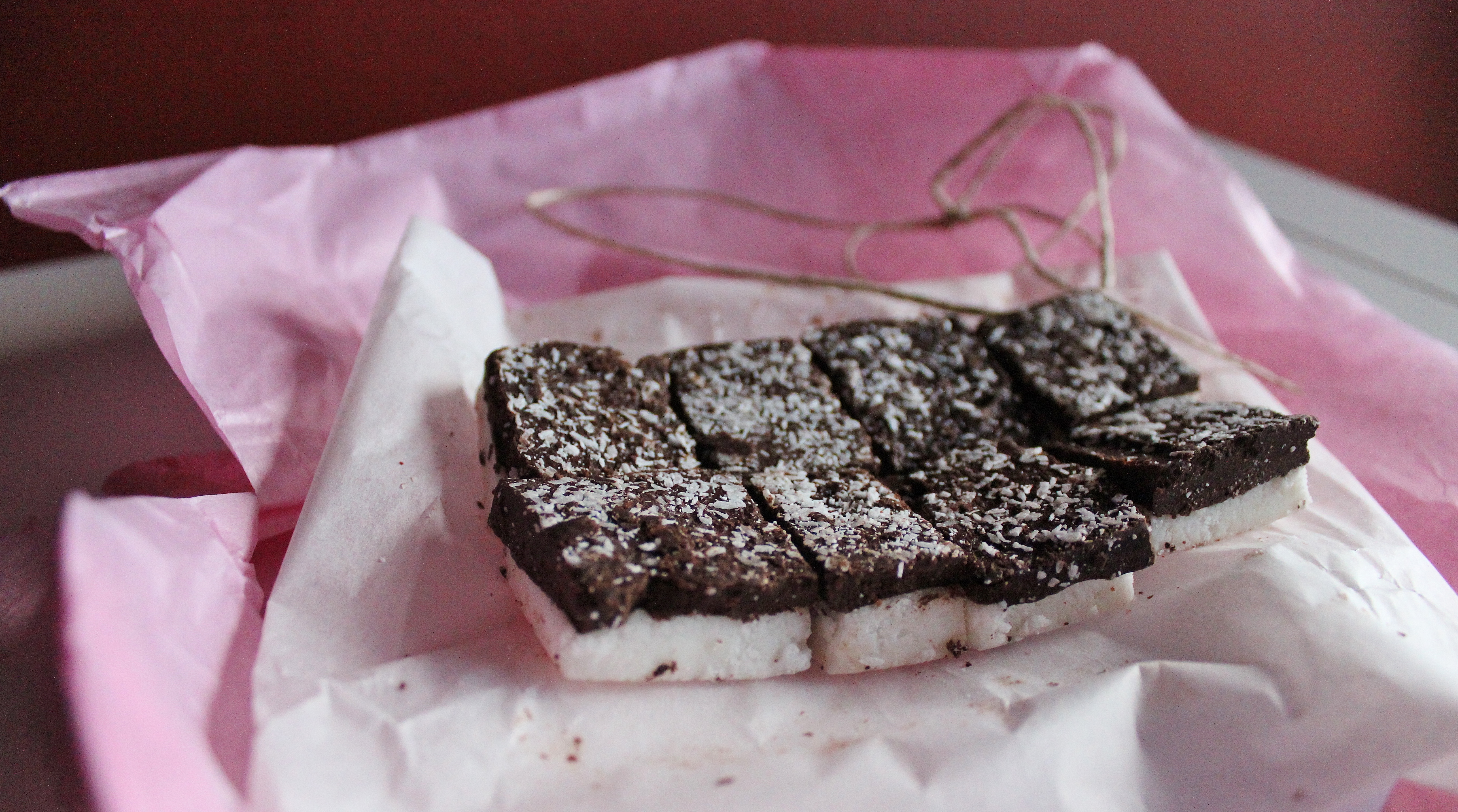 As per the rules of the swap, I was assigned three other bloggers – I received a gorgeous little raw vegan chocolate coconut squares from On the Flavor Road, which were gobbled up in one day because it sat dangerously within reach of my work keyboard.