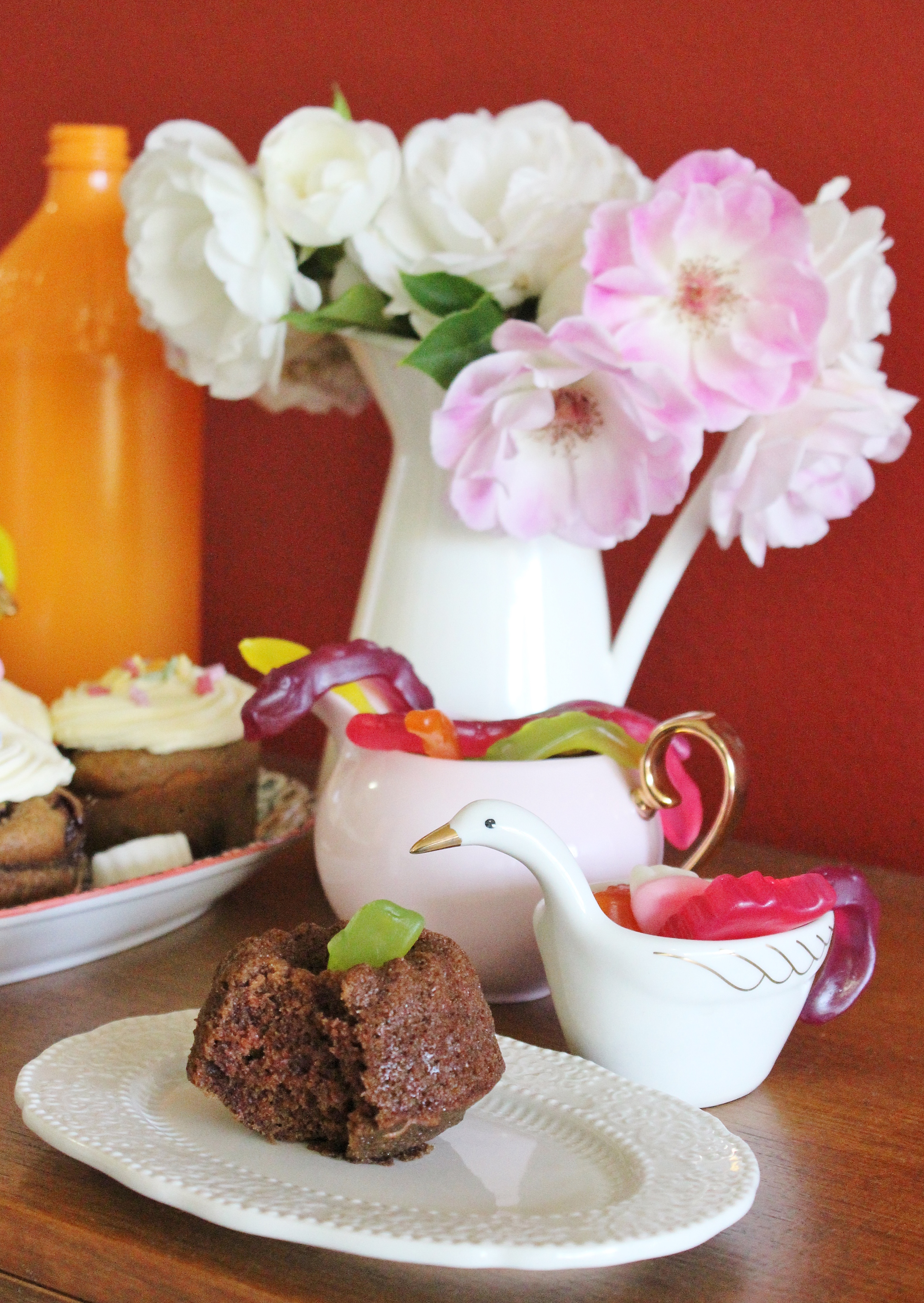 So in my quest to give Halloween a bit of a brighter look, I’m making things cute. Pumpkin and chocolate are a great combination, and when poured into a bundt tin, you can almost pretend that they’re little pumpkins – stick the tail of a lolly snake in the centre to make it look like a stalk!