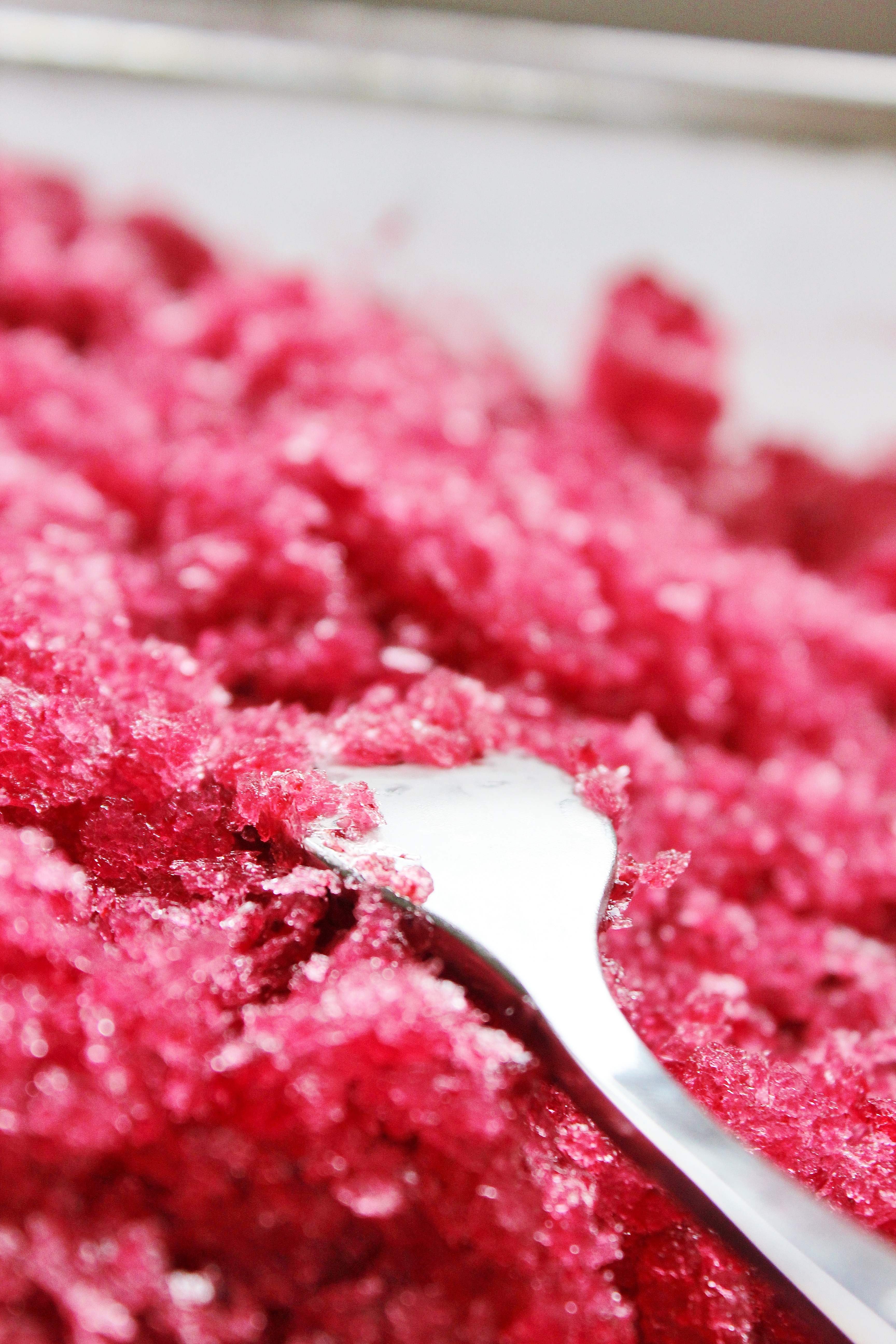 Be vigilant and resist the urge to keep checking on it and opening the freezer door. By the third time you scrape the fork through the mixture (at least 2.5 hours after you started the process, you should have nice big crystals.