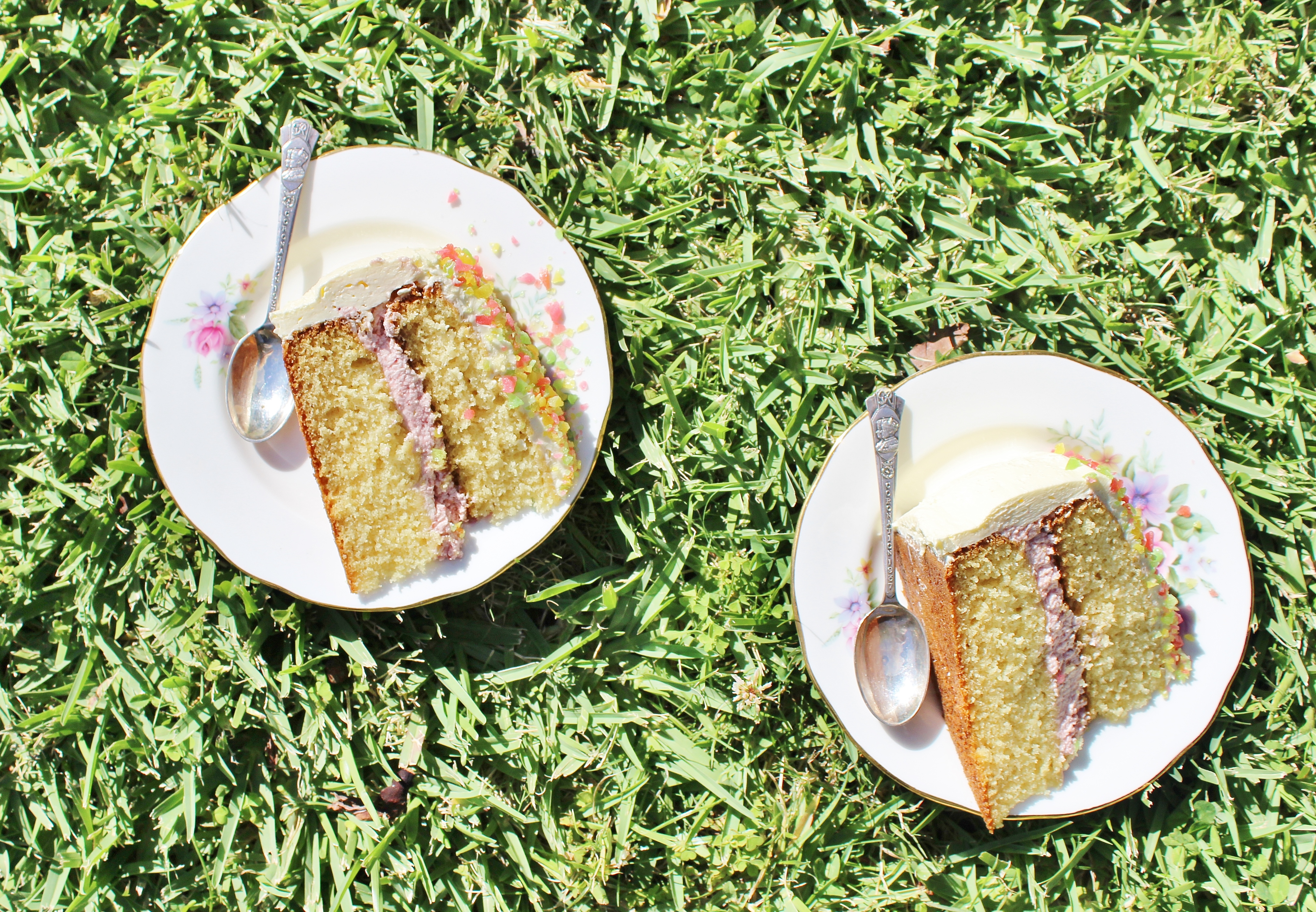 cut cakeIf you’re hosting a New Year’s Eve party, crack open the champagne early and make this cake and the champagne Swiss meringue buttercream – you’ll feel like throwing a party once you’ve assembled it, it’s such a fun cake.
