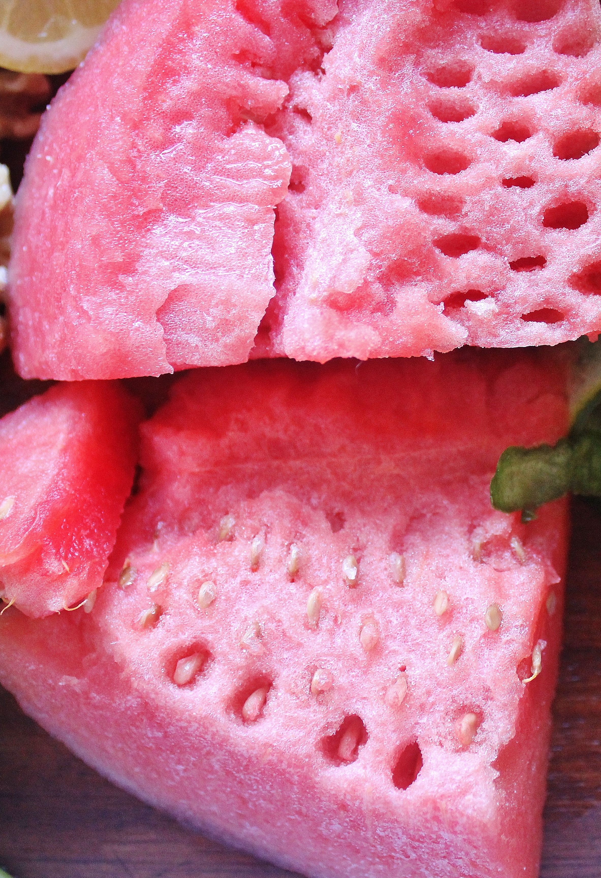I made these watermelon smoothies early in December and forgot to post them. Today’s heat reminded me that I needed them in my life again. As much as I’m missing delicious baked goods, I find it hard to justify turning on the oven in this heat! Salads, beverages and ice blocks are topping my “to make” list recently.