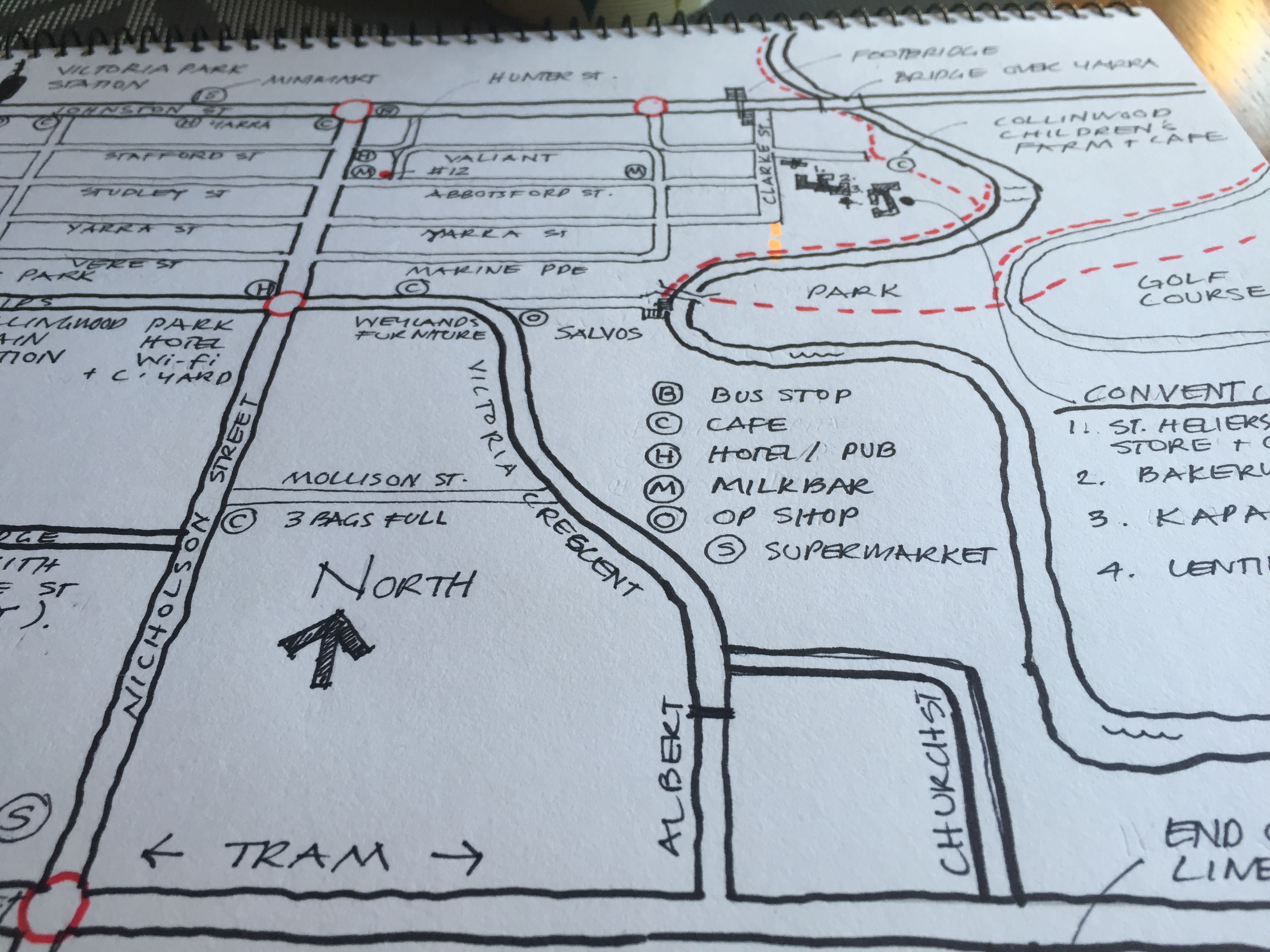 I stayed with an AirBnB host, and she hand-drew me a map – amazing, right?! It was so lovely. I loved that AirBnB offered me a view of what it’s like away from the centre of the city. I stayed five minutes from the Abbotsford Convent, which has amazing grounds worth exploring, and great cafes to eat at.