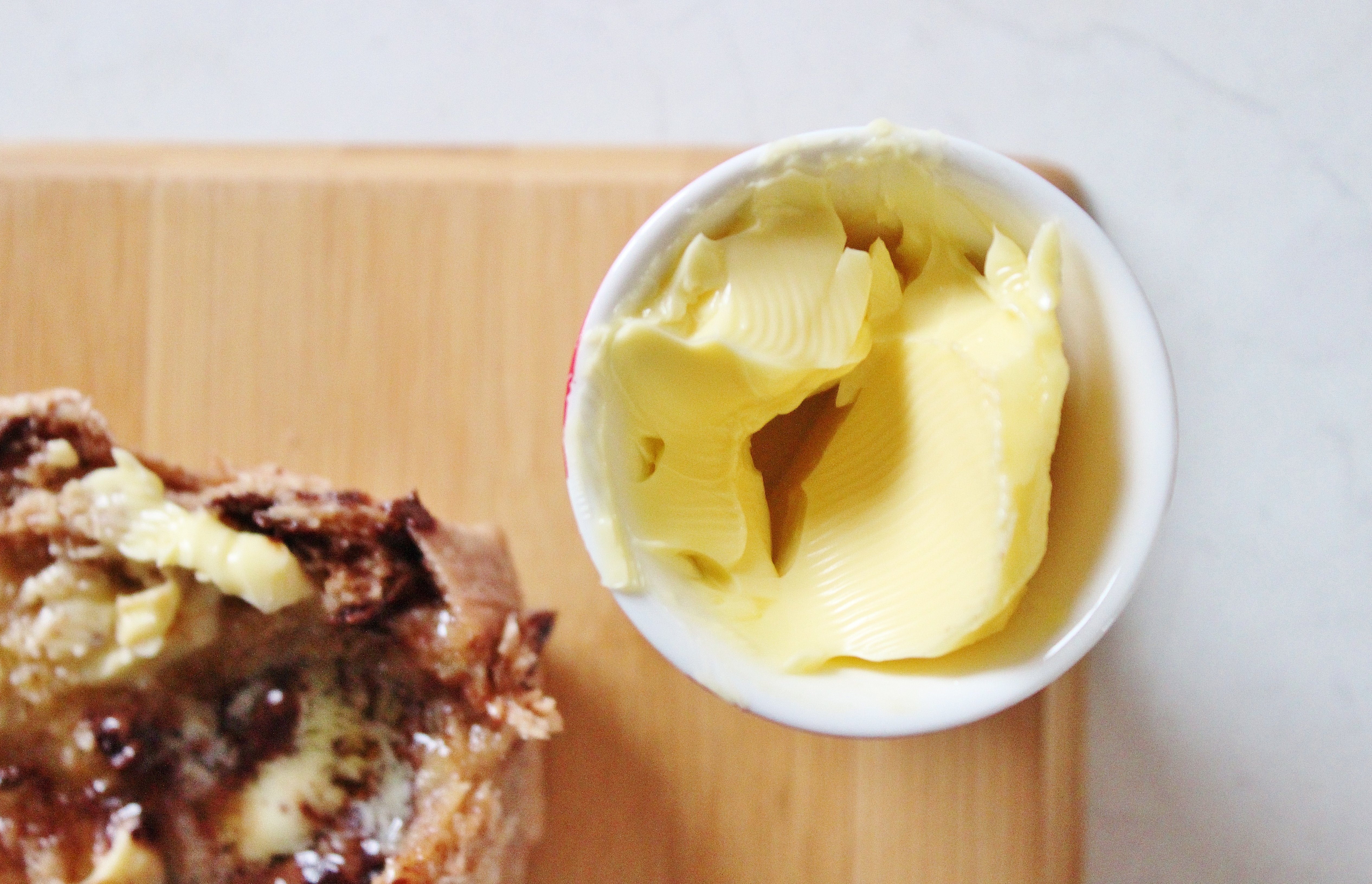 Melt your butter in a heavy-bottomed saucepan over a medium heat. Add the milk, then heat until it’s just above body temperature (you should be able to put your finger in the liquid and be able to feel slight warmth.)