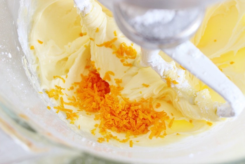 Make your icing while the canes are cooling. For the icing, mix together one cup of icing sugar with all of your butter. Add in the orange juice and rind, followed by the rest of the icing sugar, one cup at a time.