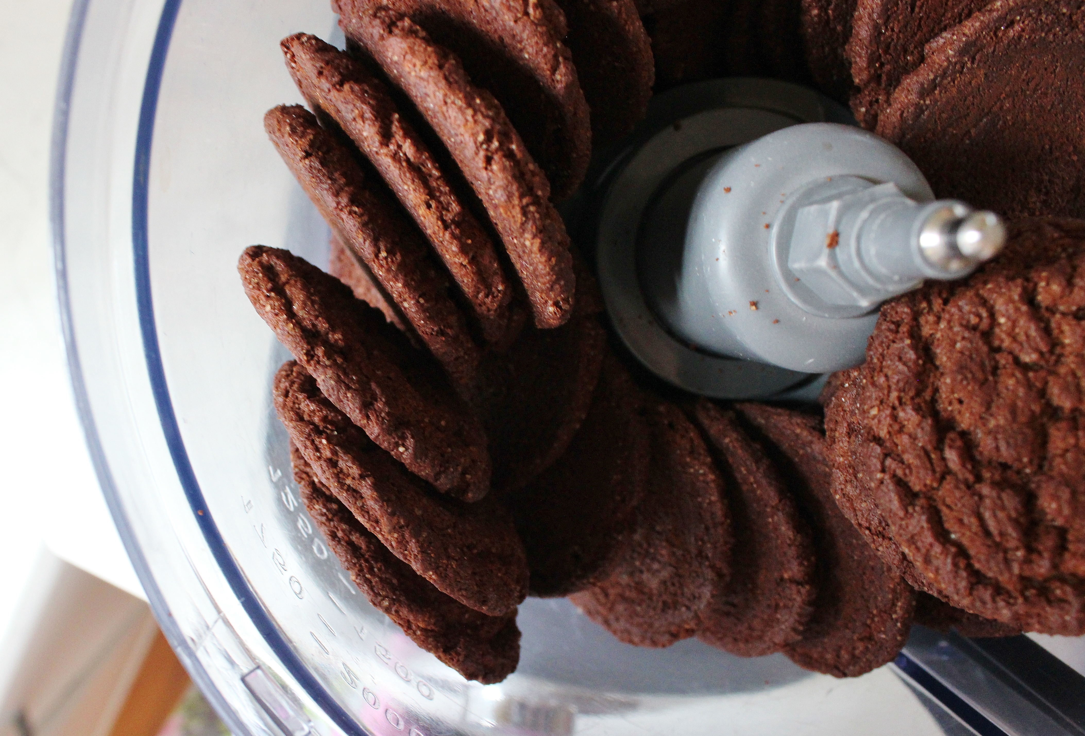 Pop your chocolate biscuits in a food processor and whiz them until they’re fine crumbs.