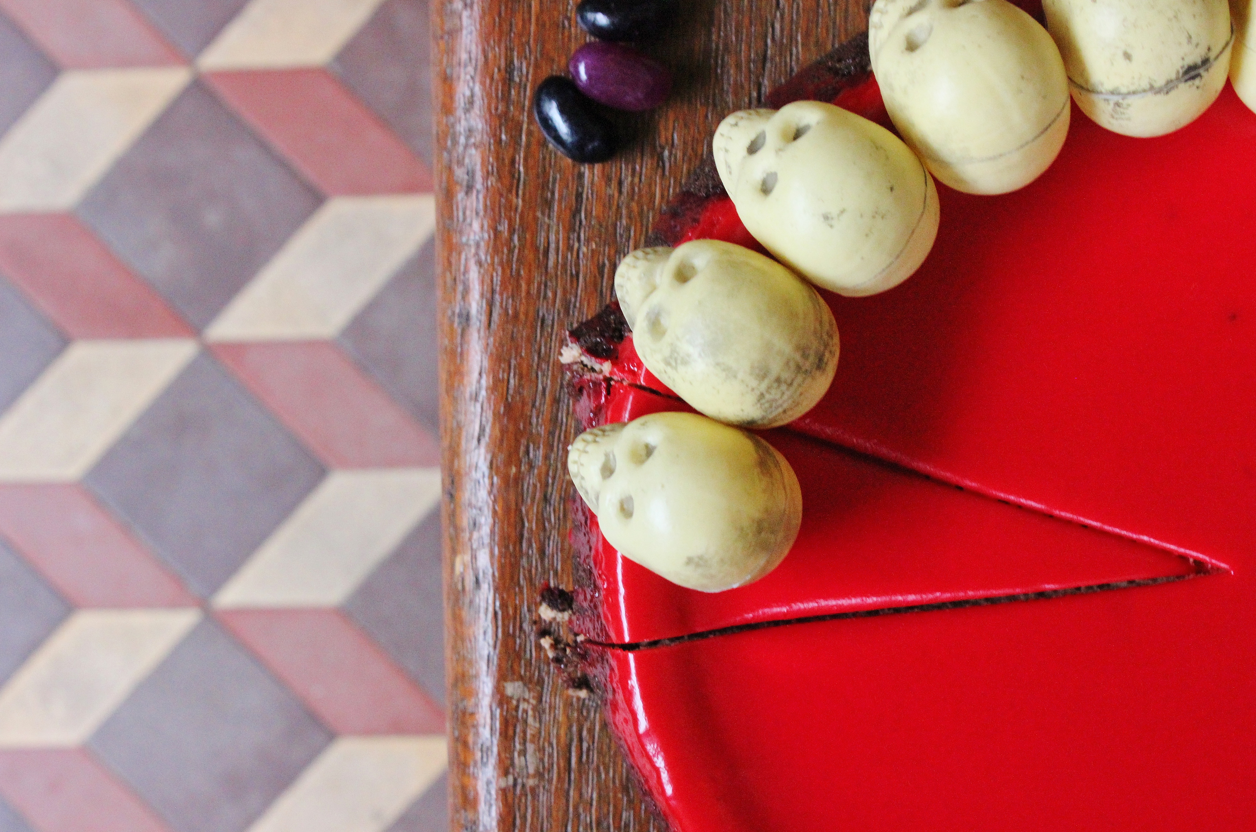 I tried really hard this year though. I wanted to get a little spooky! My Instagram feed has steered away from the usual airiness and into the darkness. And I created this ominous looking beast, which is delicious as well as dripping in chocolate blood!