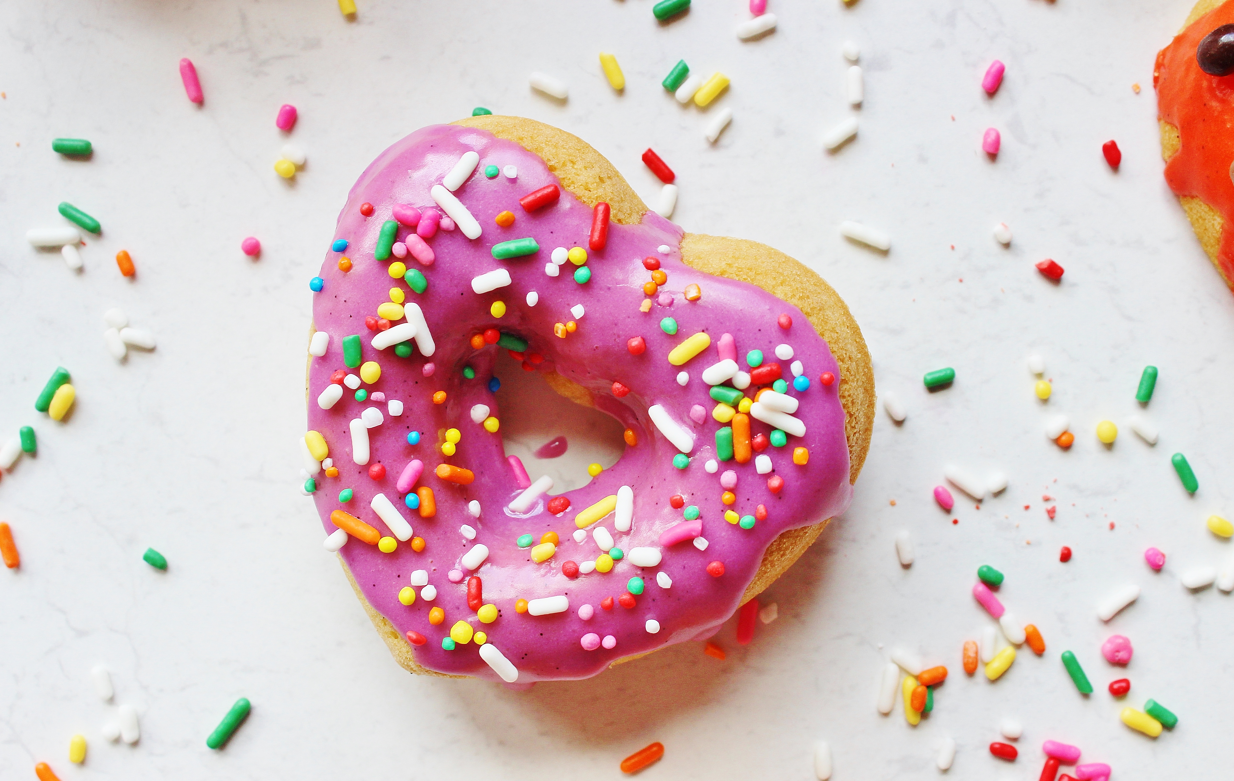 Spoon your icing over the top of two doughnuts, spreading gently with the back of the spoon to encourage good coverage. Decorate these two before the icing sets, then move onto icing and topping the next two. Alternatively, rope in some small children to help out, this bit is lots of fun!