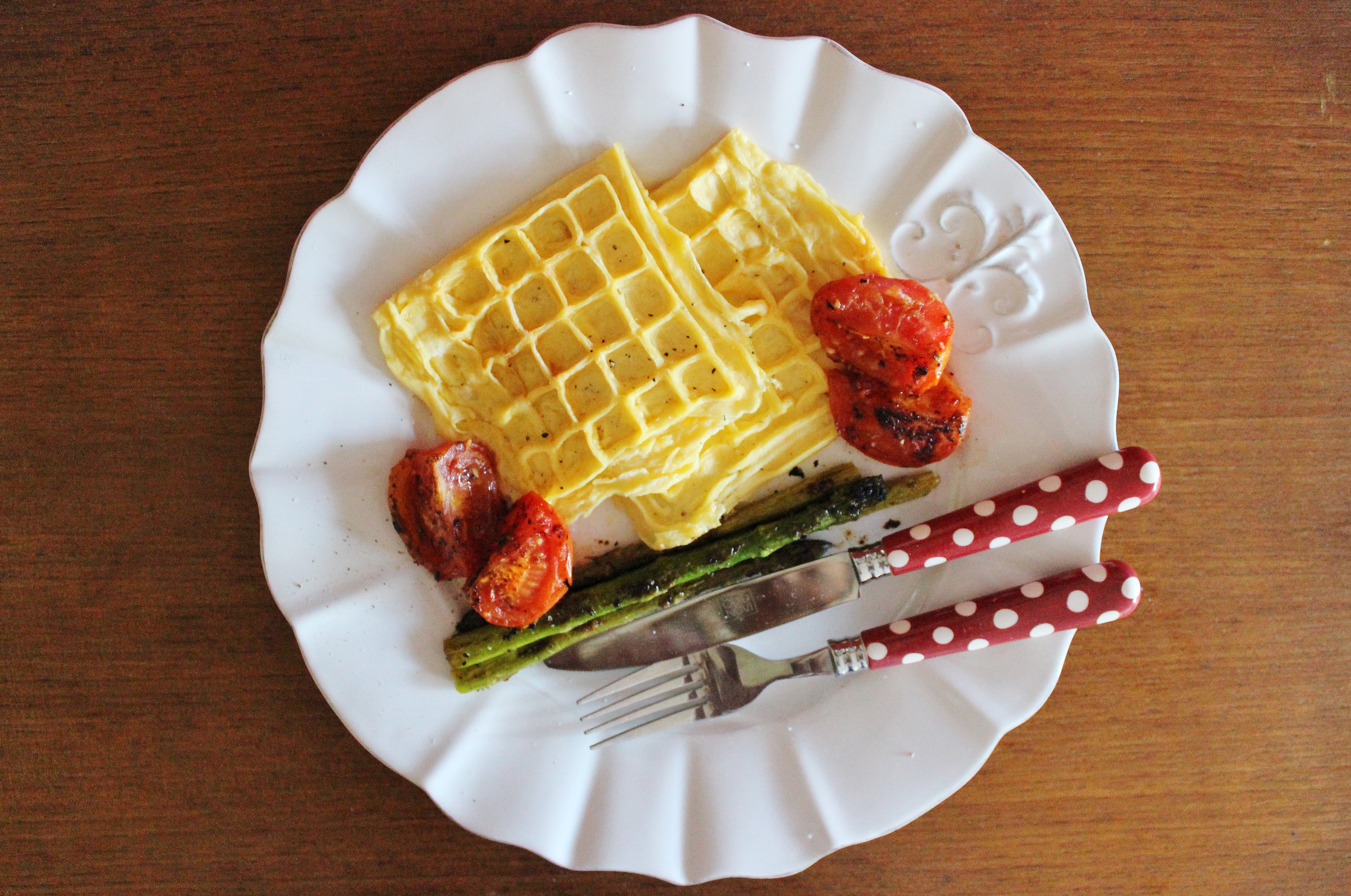 So even though I had intended on posting this tart today, I can’t. This waffle omelette (wamelette? Omelaffle?) needs to be introduced to the world. I’m too excited about it.
