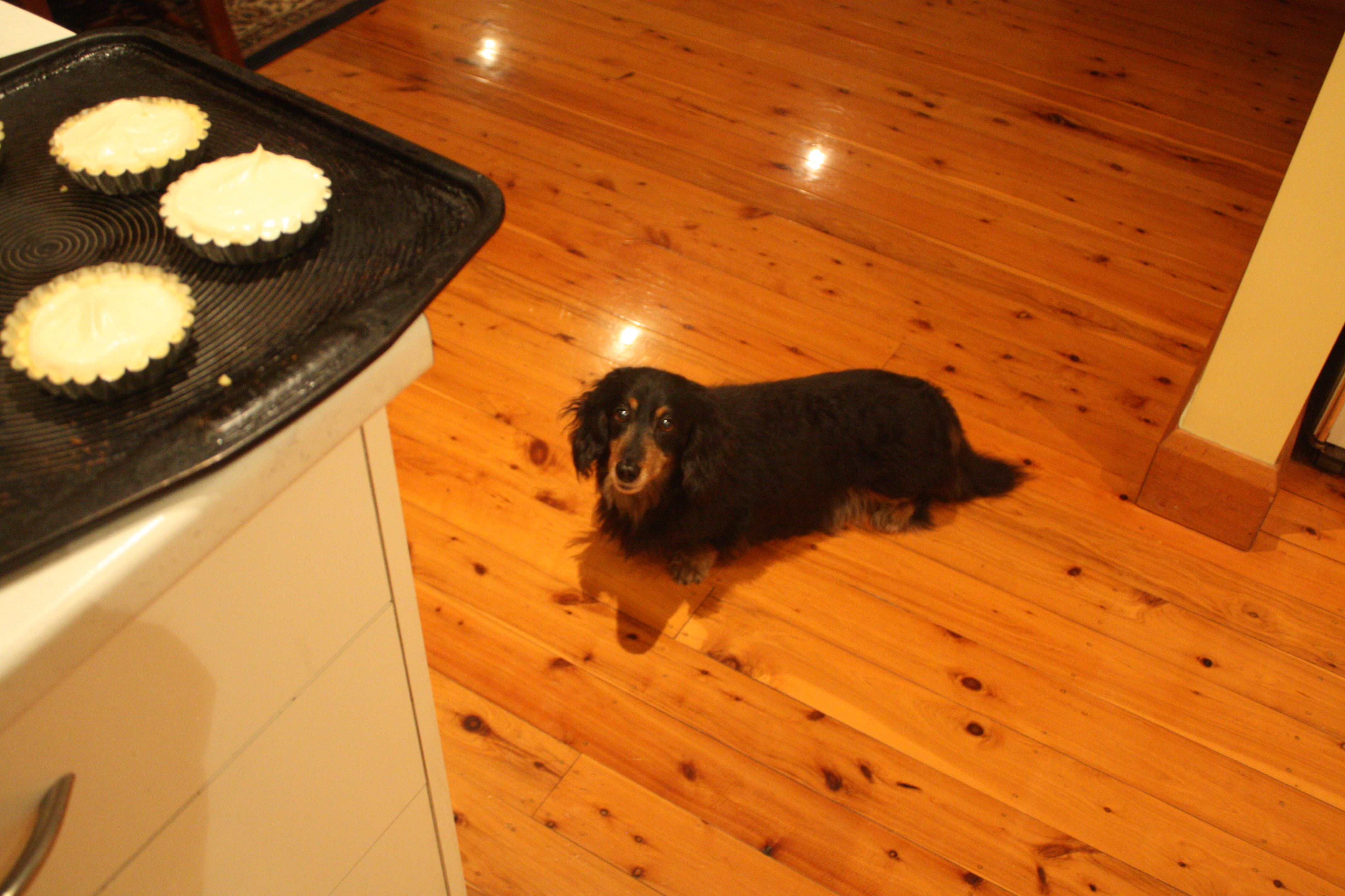 Remove the tart cases from the oven and allow them to cool. Take them out of their cases and put your second batch of cases in to cook. When your second lot of tart dough has come out of the oven and cooled, prepare to put your cheesecake mixture in.