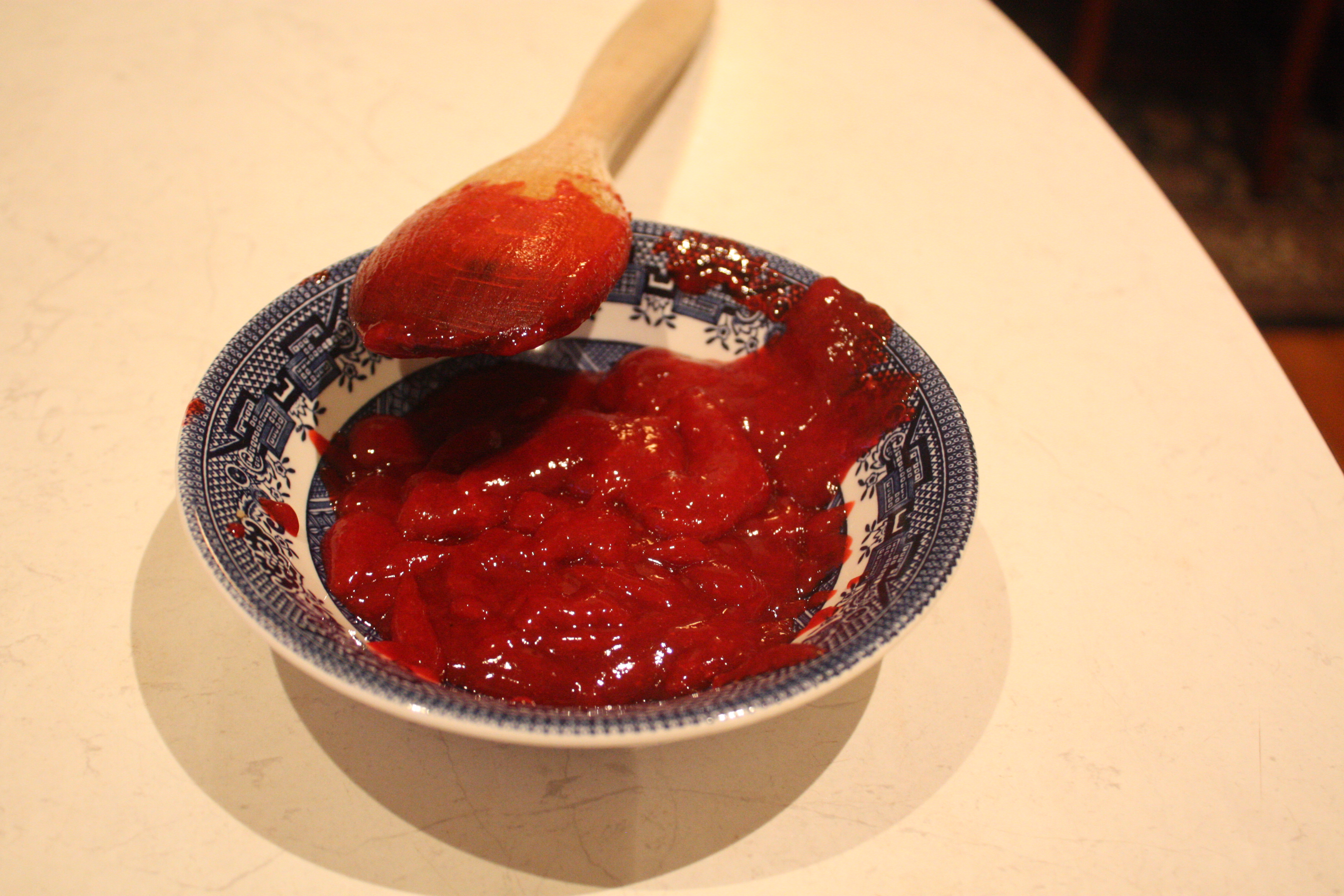 It’s going to look a little bit like something from a bad horror film – all red and gloopy, but it’s delicious. Set your puree aside, you’ll need it in about ten minutes.