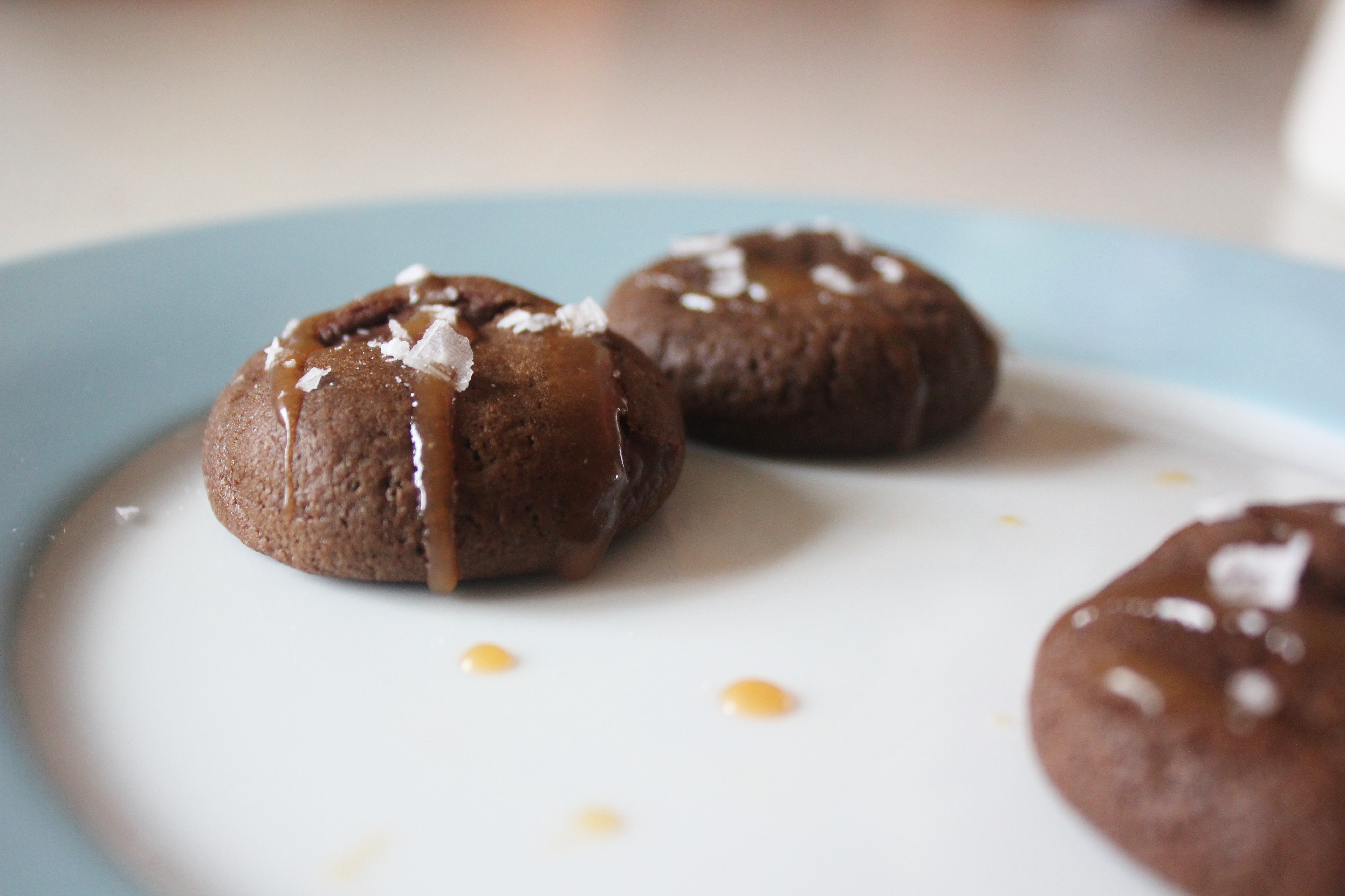 saltThese biscuits are divine. They’re like little bites of cake; they’re just the right amount of chocolateyness and they have these perfect seams of chocolate running through them… topped with the salted caramel, these may just be the answer to every first world problem you can think of.