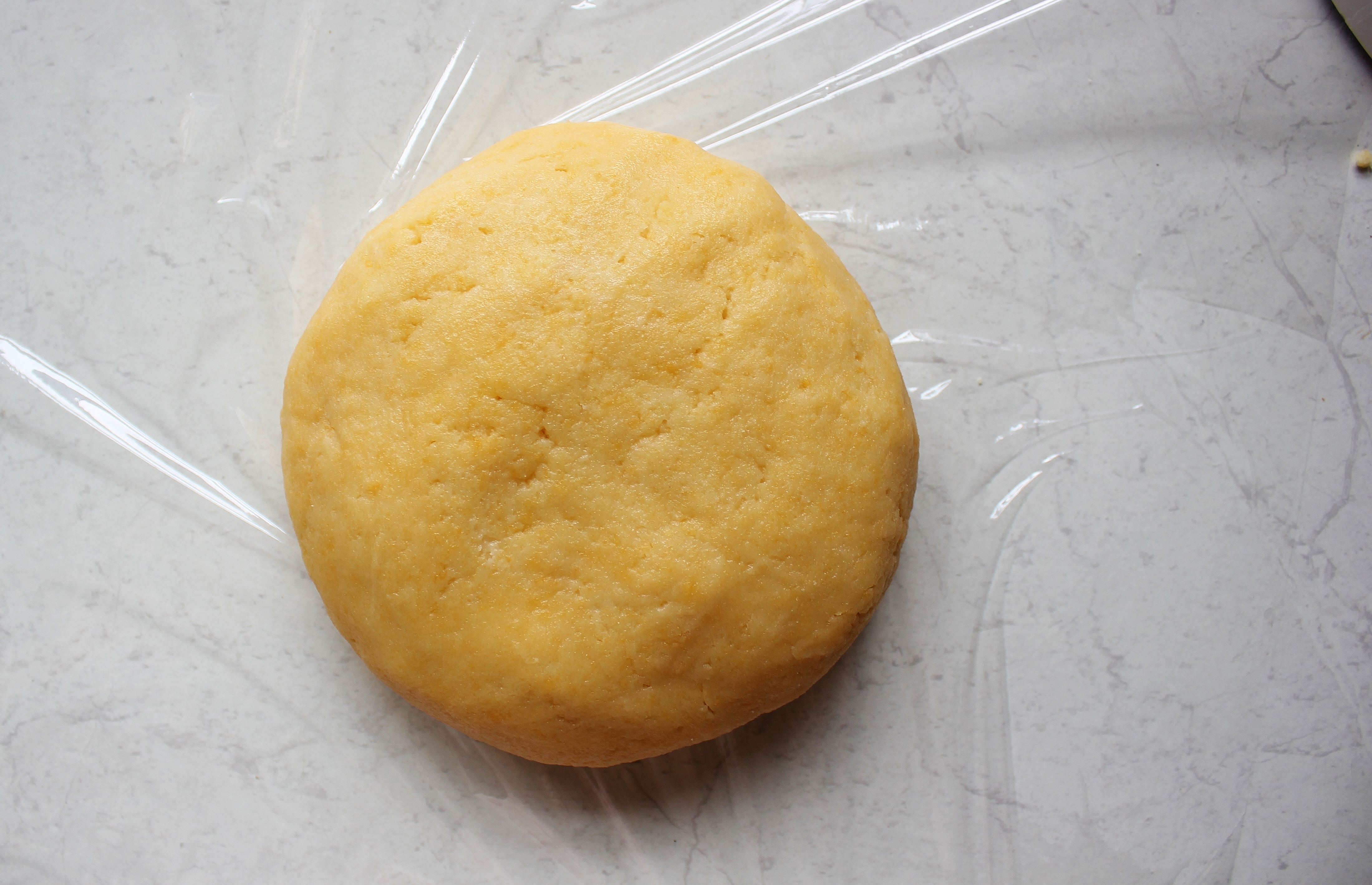 Press your dough together in a ball, cover in cling wrap and refrigerate for 15 mins.