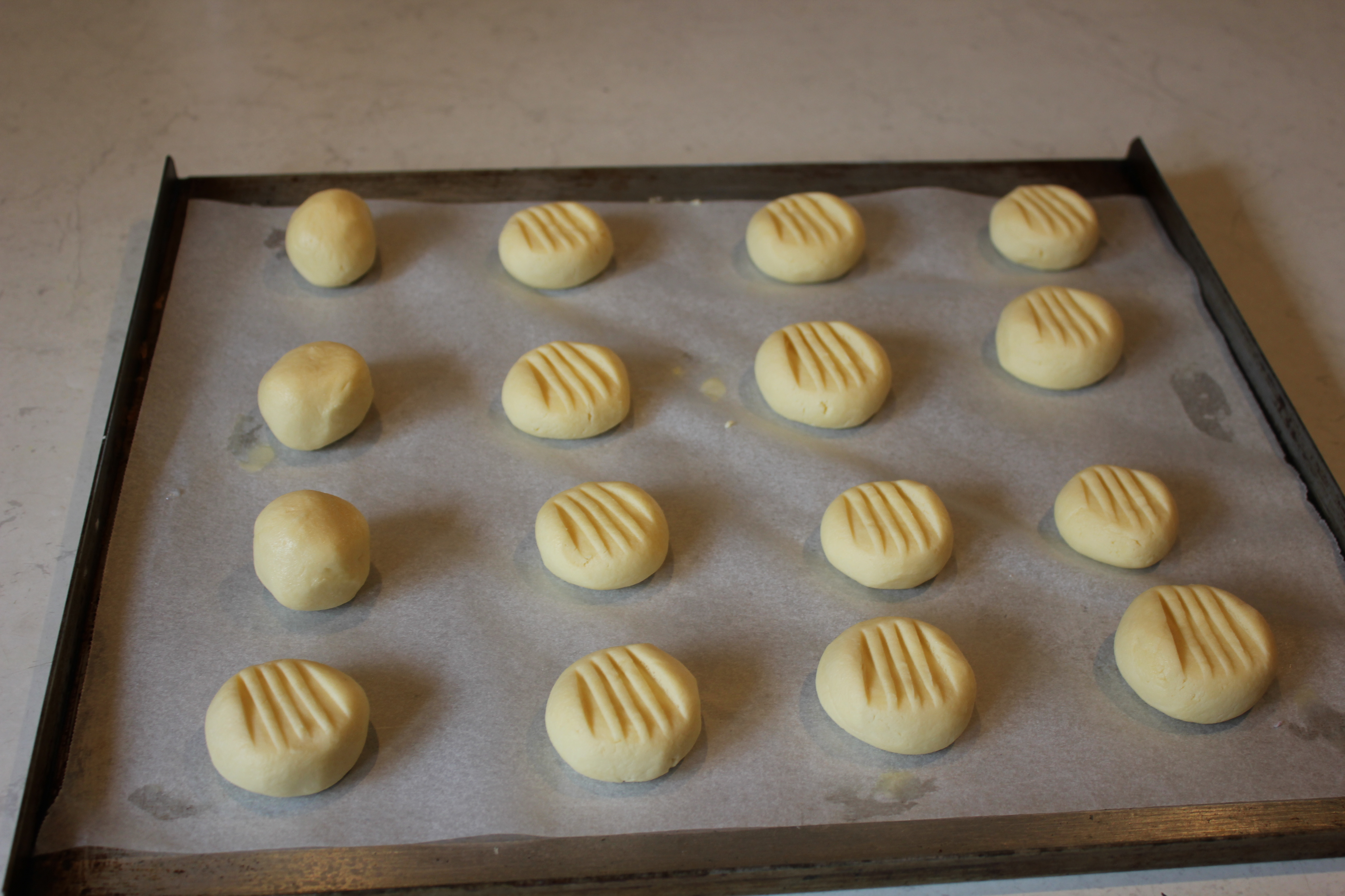 Grease two 12 cup muffin moulds and preheat the oven to 180 degrees. Take the dough out of the fridge and spread flour over a clean surface. Spread your rolling pin with flour too to stop the dough from sticking to it. Roll your dough out very thinly and use a cutter that is bigger than your muffin cups. Press the circles of pastry into your greased tins. Prick each circle at least three times and then pop them into the oven for ten minutes.
