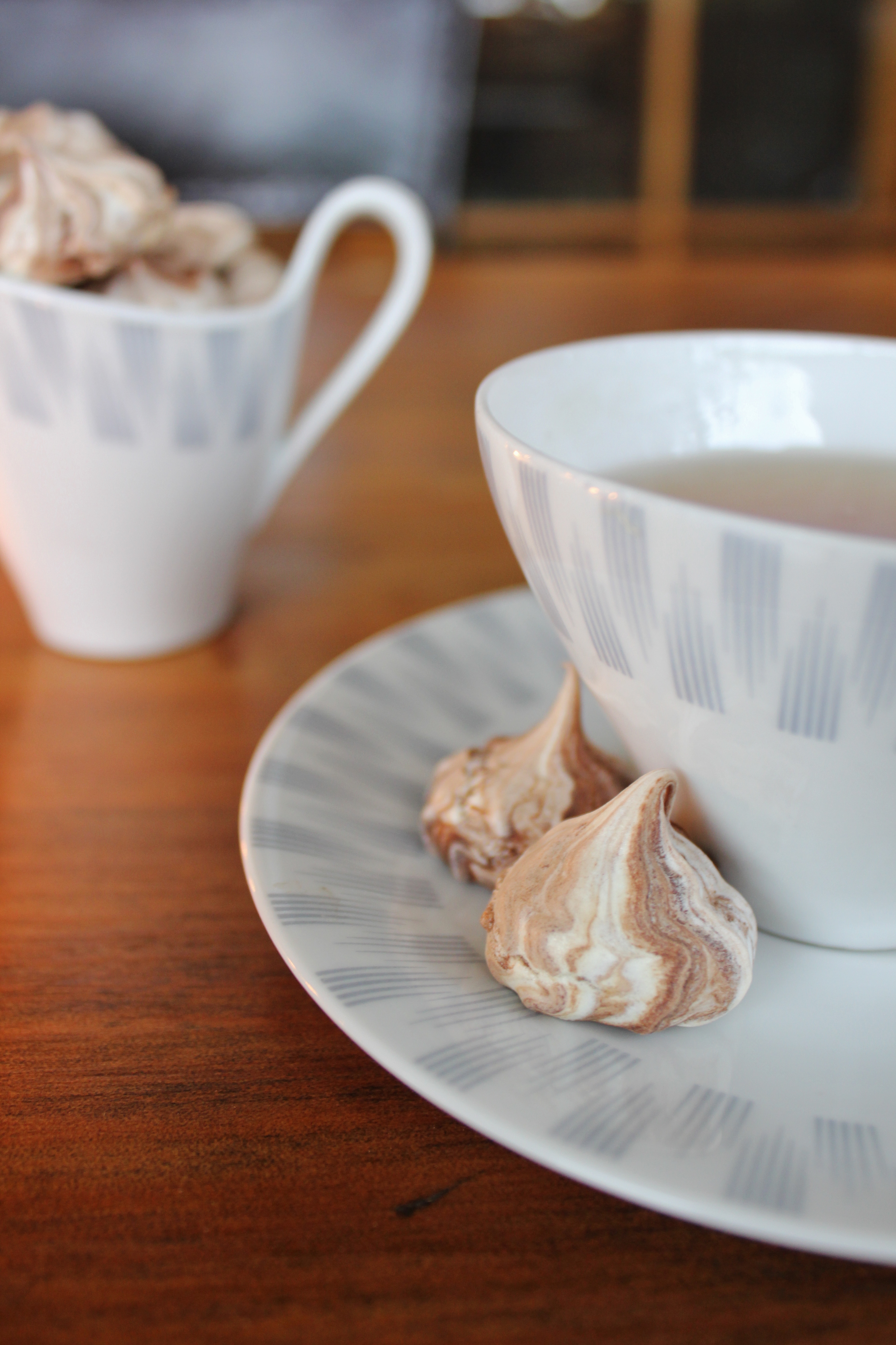 Whip your sugar and egg whites together. Start on a lower speed (I went for 3 on my stand mixer) and speed it up a notch at a time (up to about 8) over the course of a minute; I find that this method gets the most air into the meringues.