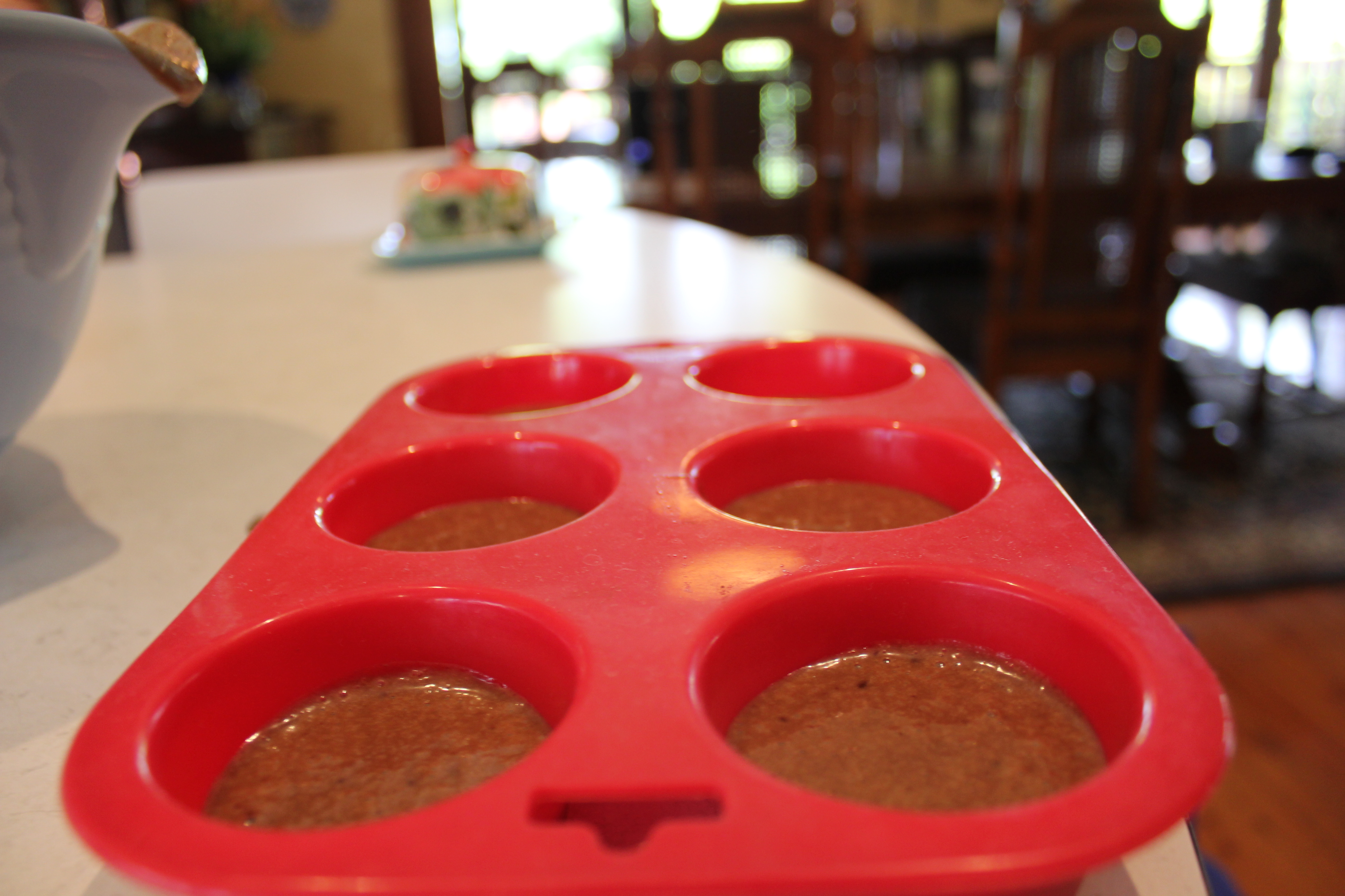 Preheat the oven to 100°C and grease up your cupcake tin. If you’re lazy like me, use silicone bakeware and you won’t have to grease anything. Stir in the egg and sour cream and combine it as well as you can. The mixture will be a bit dry at this point, so it’s okay if it’s looking crumbly.
